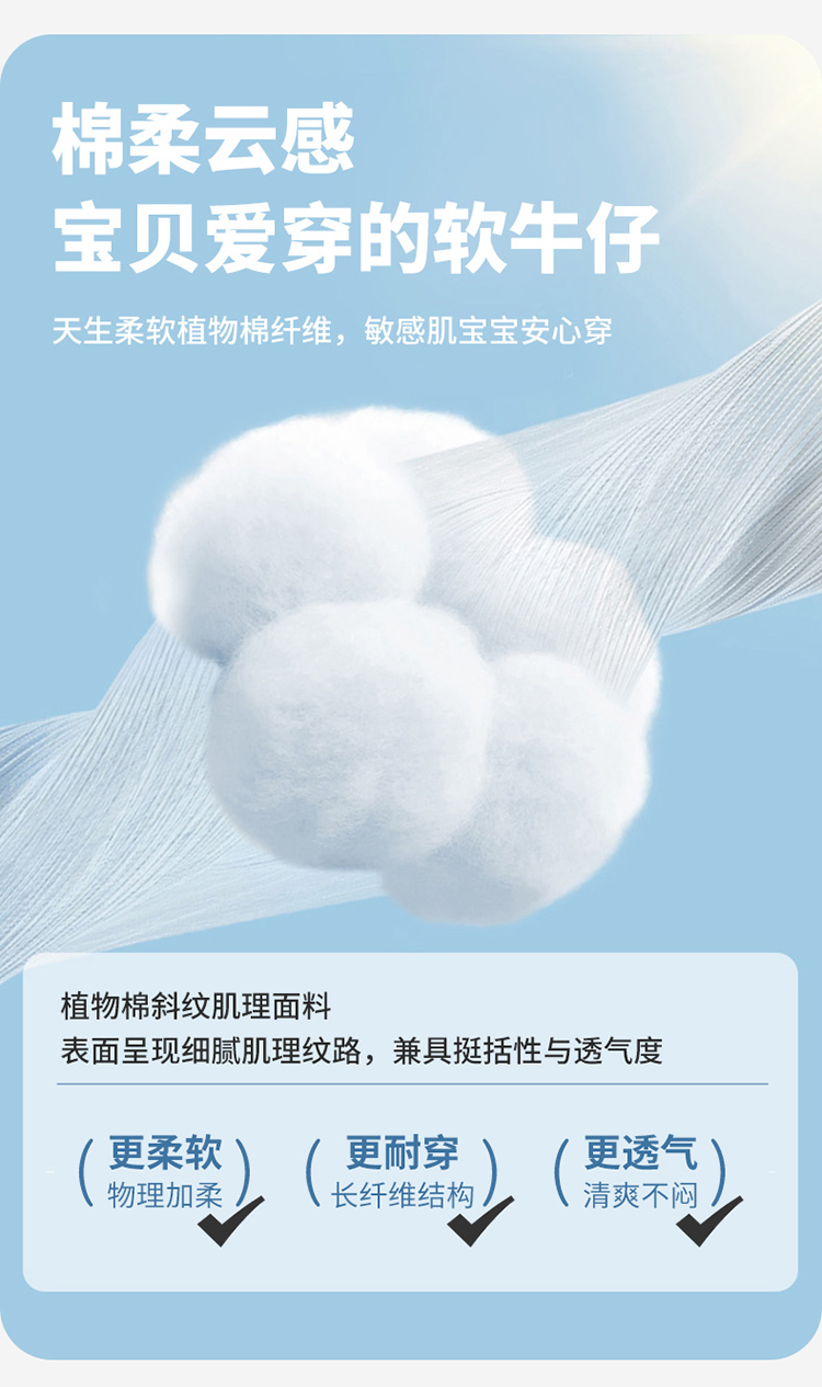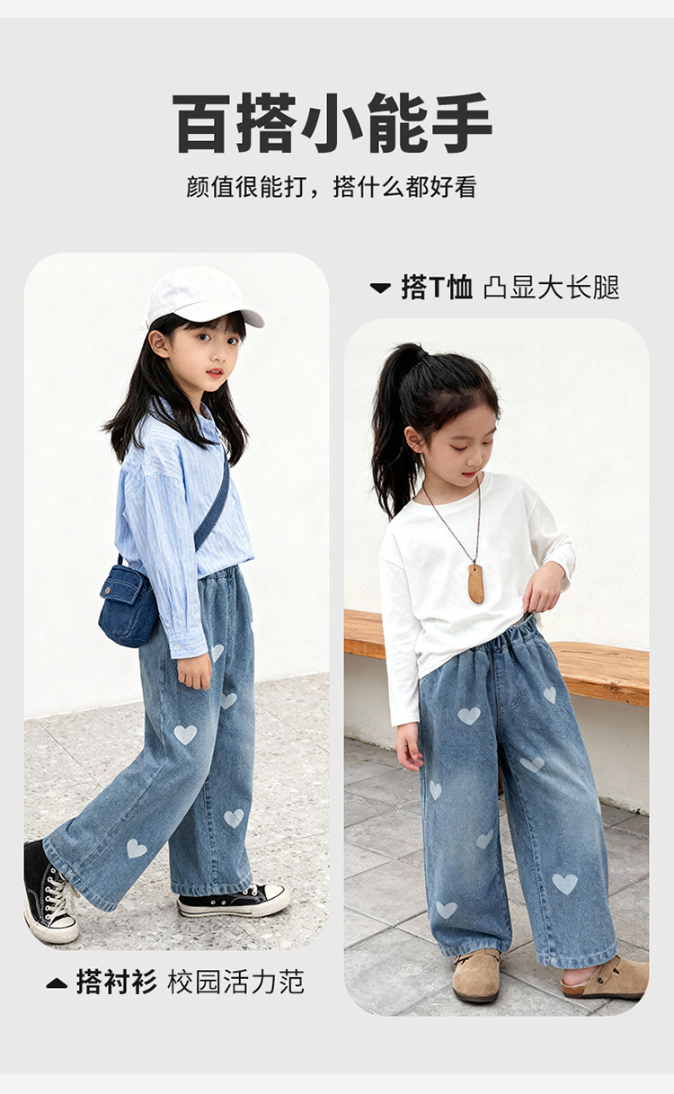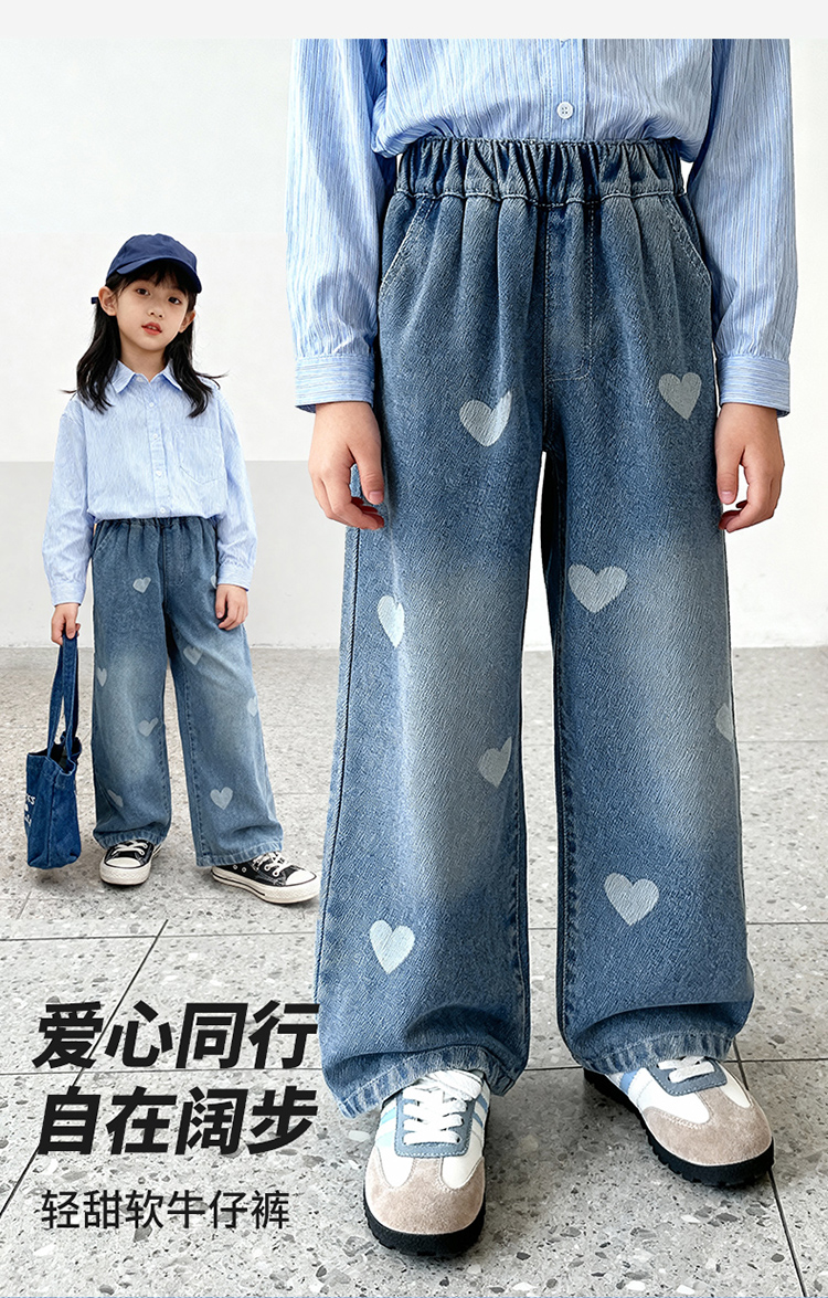 贝贝怡童装儿童牛仔裤宽松舒适弹力女童长裤2026春季新款休闲裤子ZB1FK019