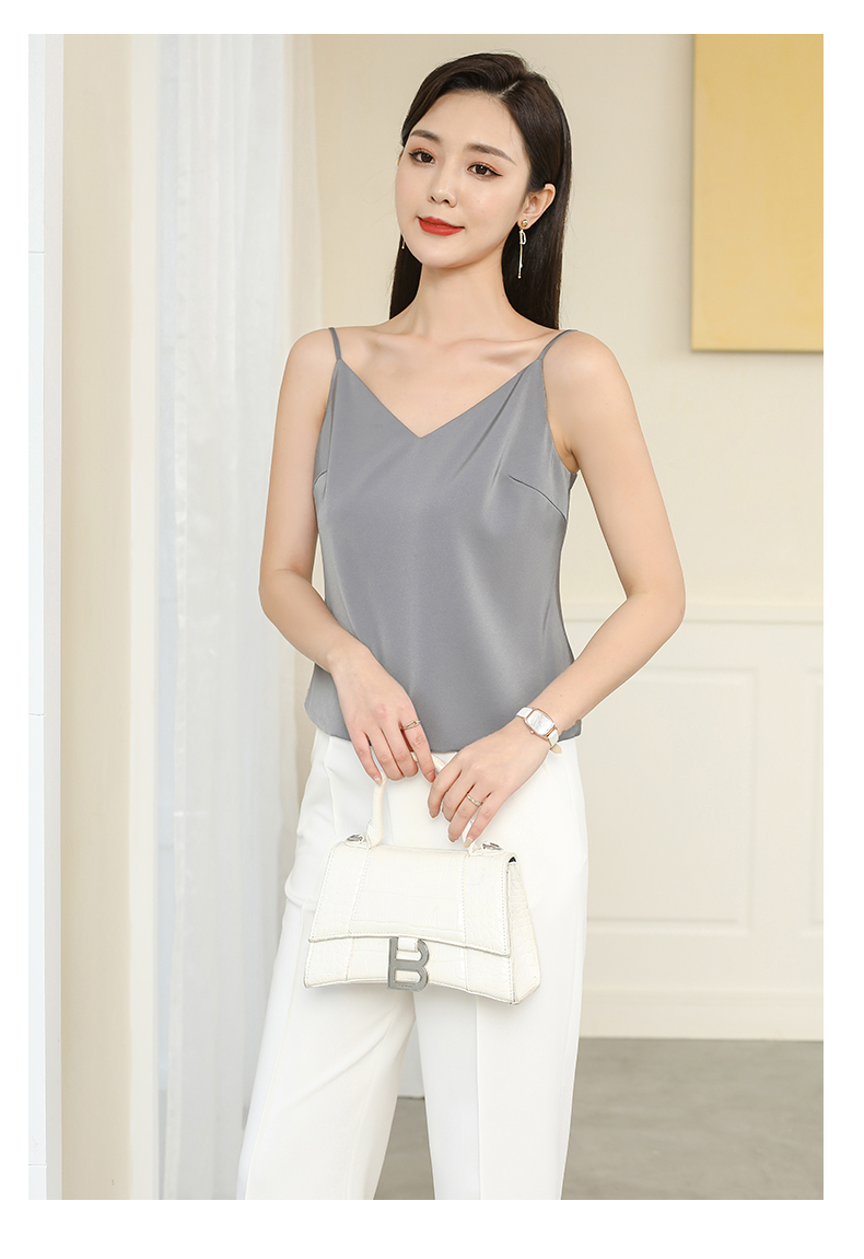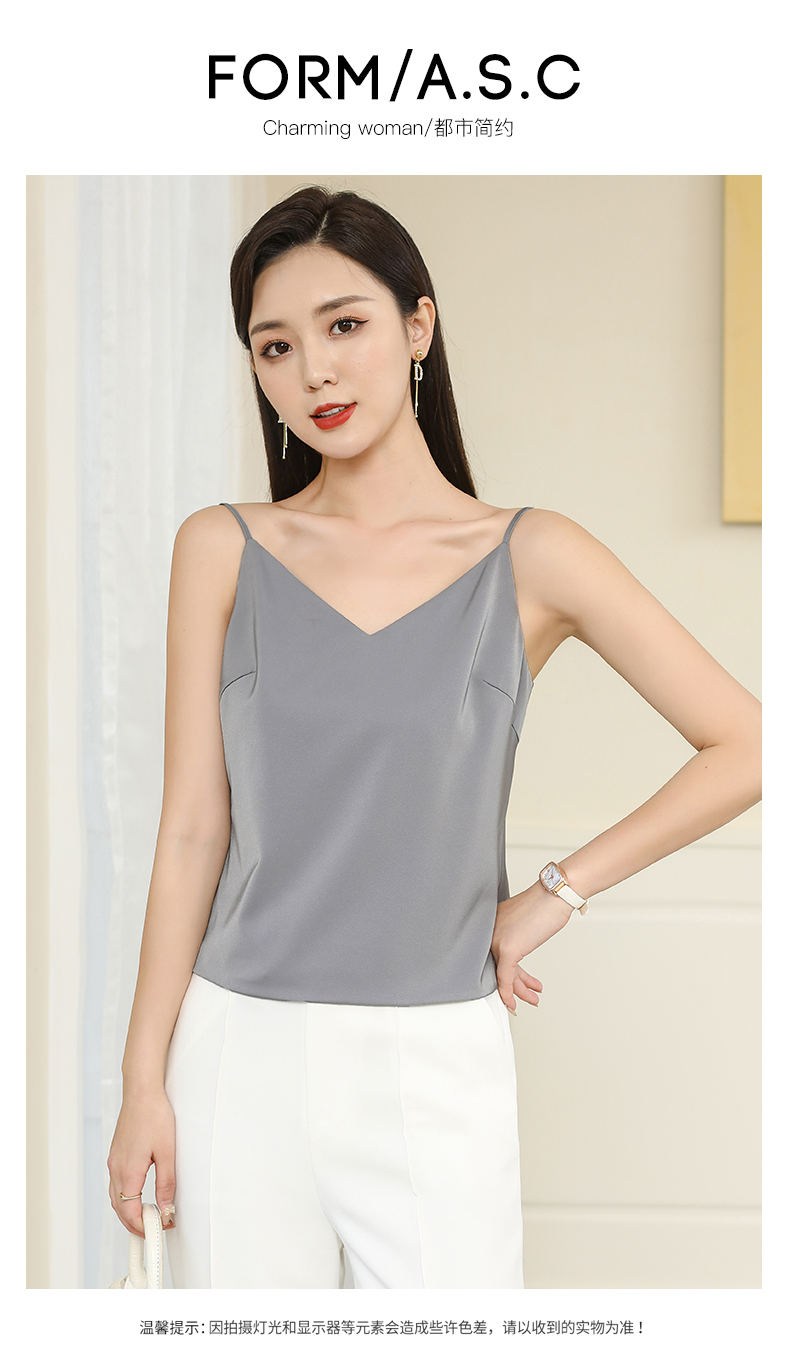 艾尚臣醋酸缎面吊带女无袖上衣夏宽松外穿法式西装内搭打底小背心