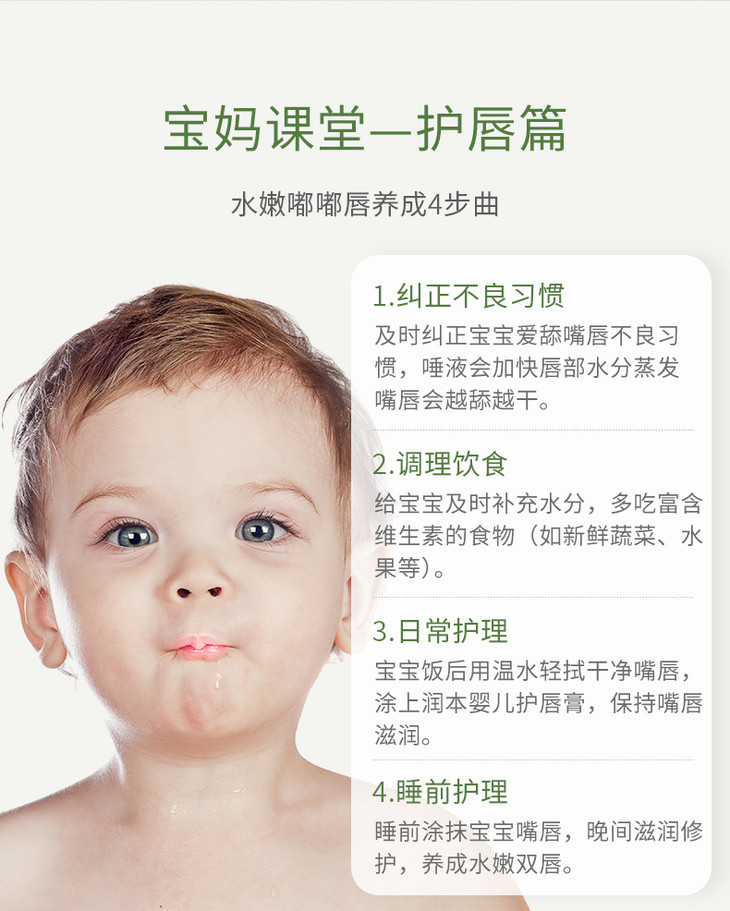 所以啊,到了秋冬天,爸妈们一定要用润唇膏呵护宝宝娇弱的小嘴唇。