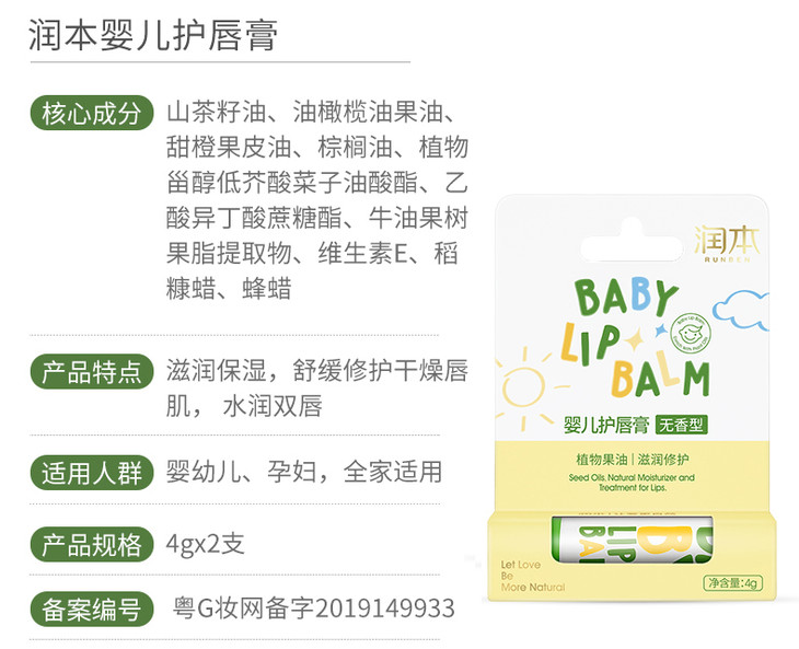 润本无添加儿童唇膏(4g/支)