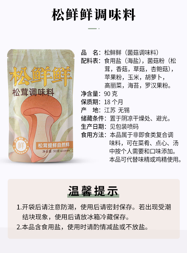 【宝宝也能放心吃的松茸调味料】荣获2021年国际美味奖章 0添加0防腐的 松茸食材天然提鲜 少盐减钠 全家吃得更放心 90克*5袋】包装换新升级啦!!!
