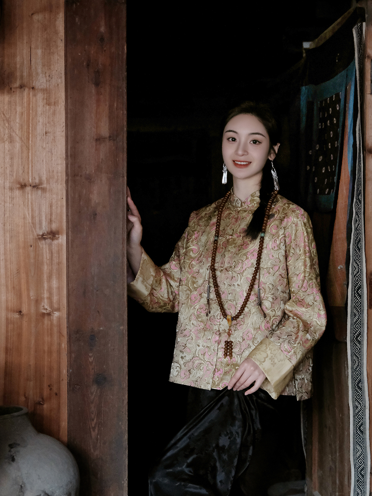 盛唐牡丹 |冠乐绉流苏款外套正反两穿 (不夹棉)