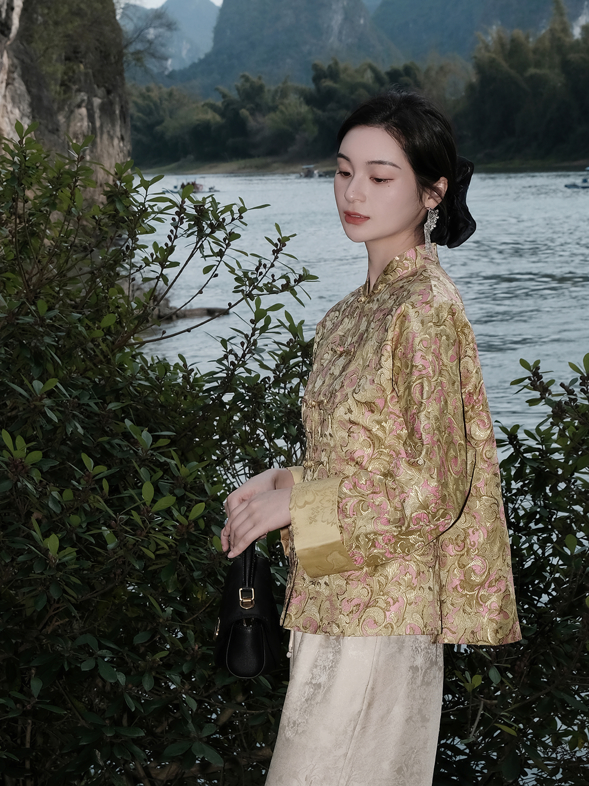 盛唐婧 |限量款宋锦老料鸢尾花对襟外套