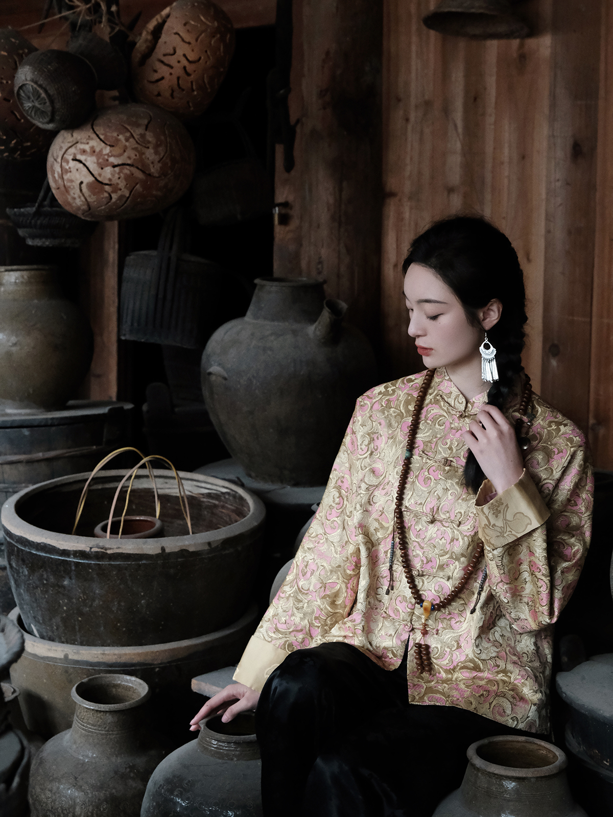 盛唐婧 |米杏色新中式国风提花上衣
