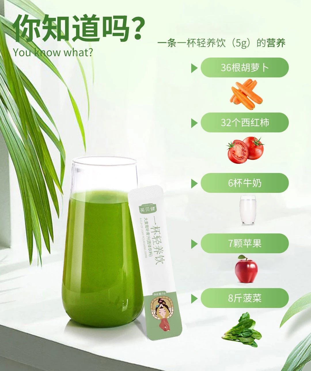大麦若叶青汁=36根胡萝卜🥕32个西红柿🍅6杯牛奶🥛7个苹果🍏8斤菠菜🥬……