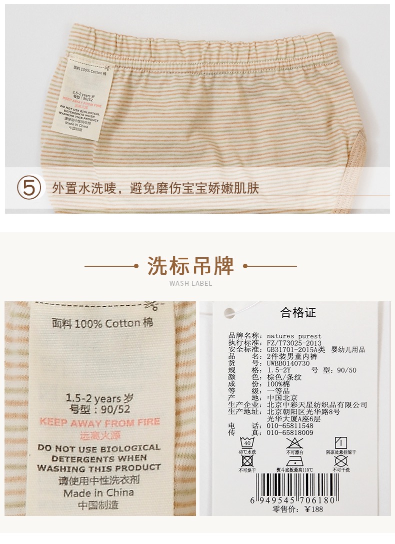 【云粉节】9楼英国natures purest(天然素彩)男宝宝内裤彩棉柔软舒适男童全棉内裤2件装丨吊牌价:188元