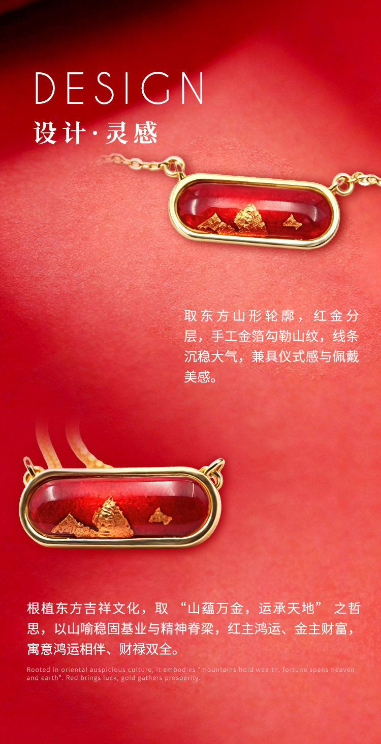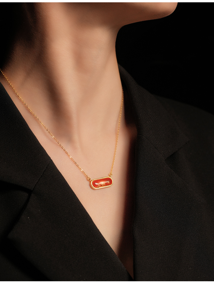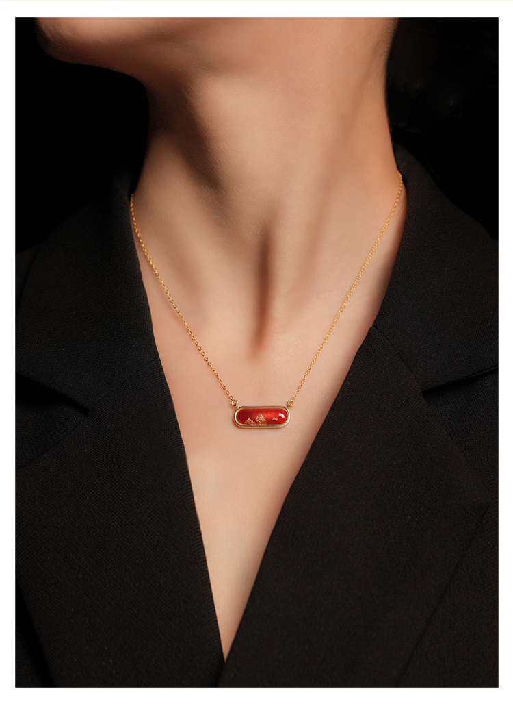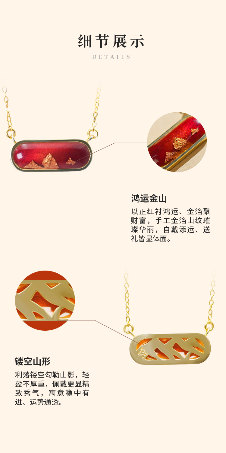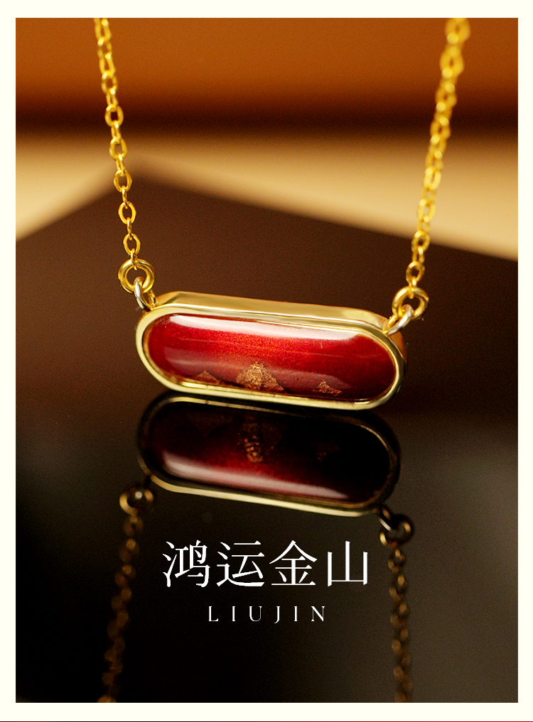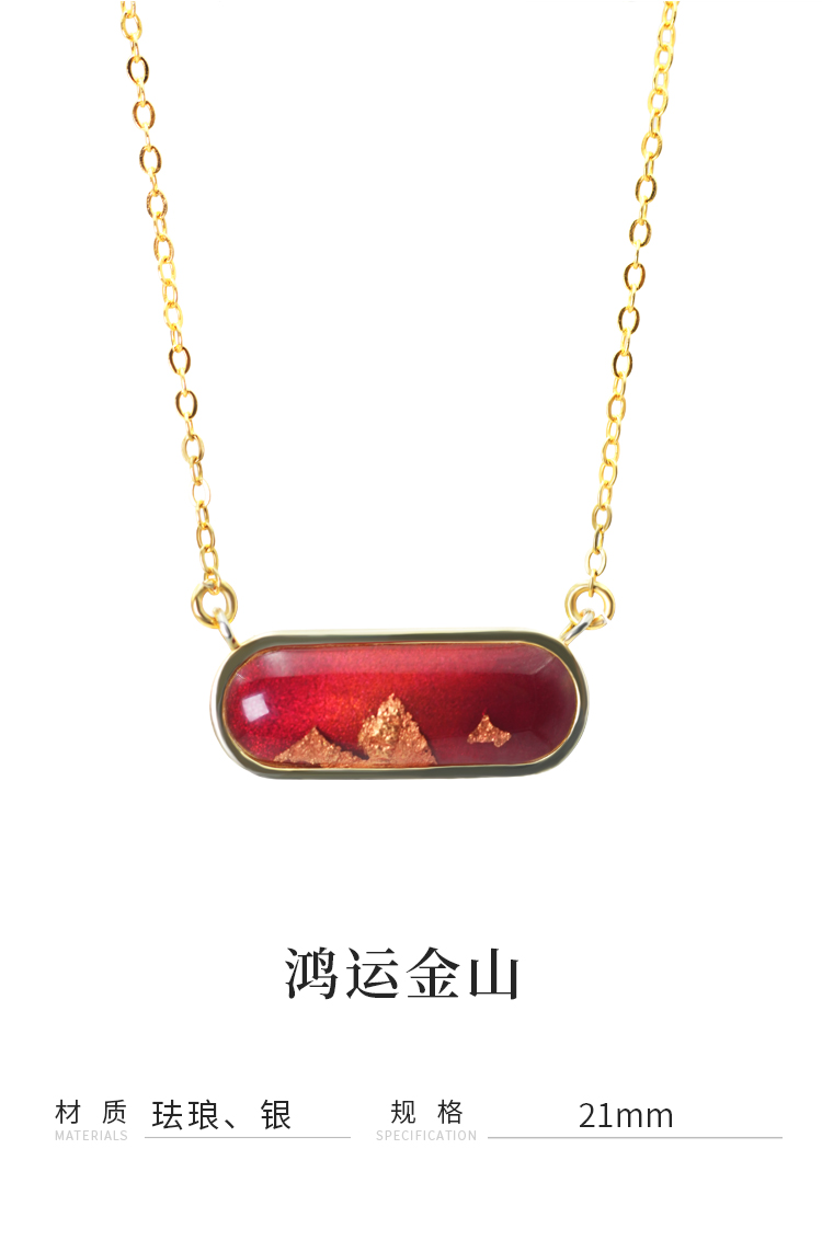 鸿运金山 · 金箔真珐琅纯银项链