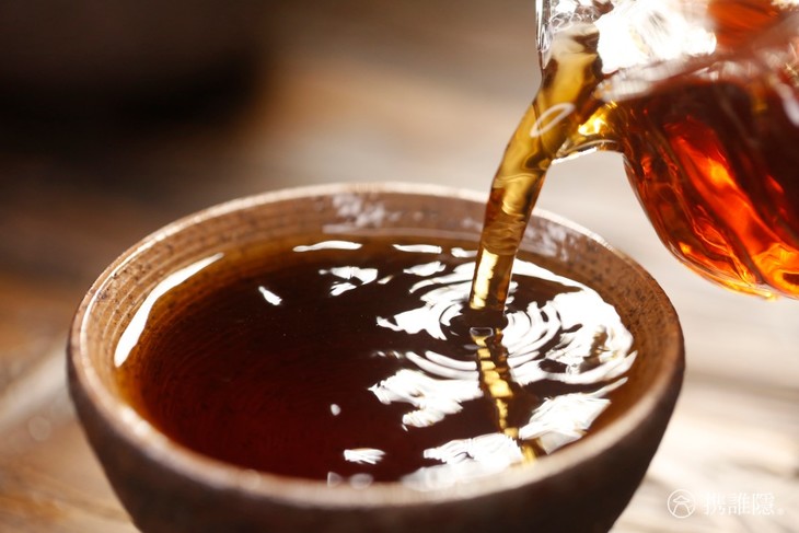 茶汤入口可感水路细滑,果蜜香上冲,溢满口腔。滋味浓醇饱满,甘润柔和,喉部有清凉感。特殊橄榄香大异于传统熟茶口感,令人印象深刻。
