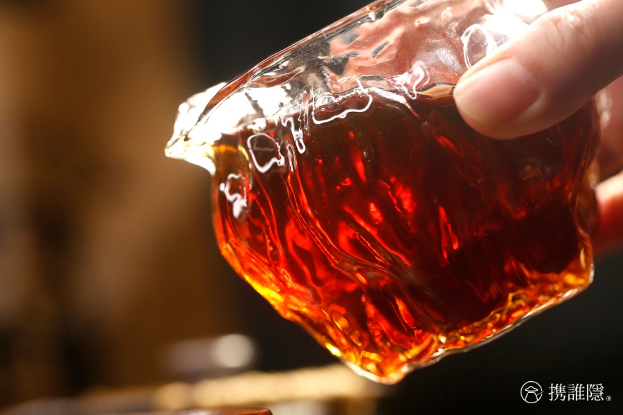 汤色栗红通透,色泽悦目。杯底留香为高亢花蜜香、冰糖香,清爽怡人,留杯持久。