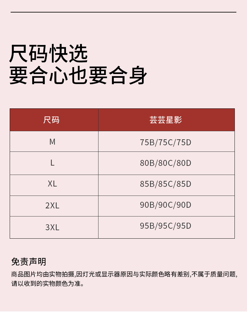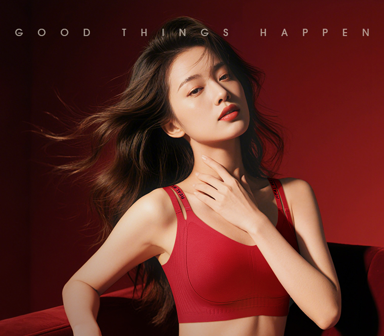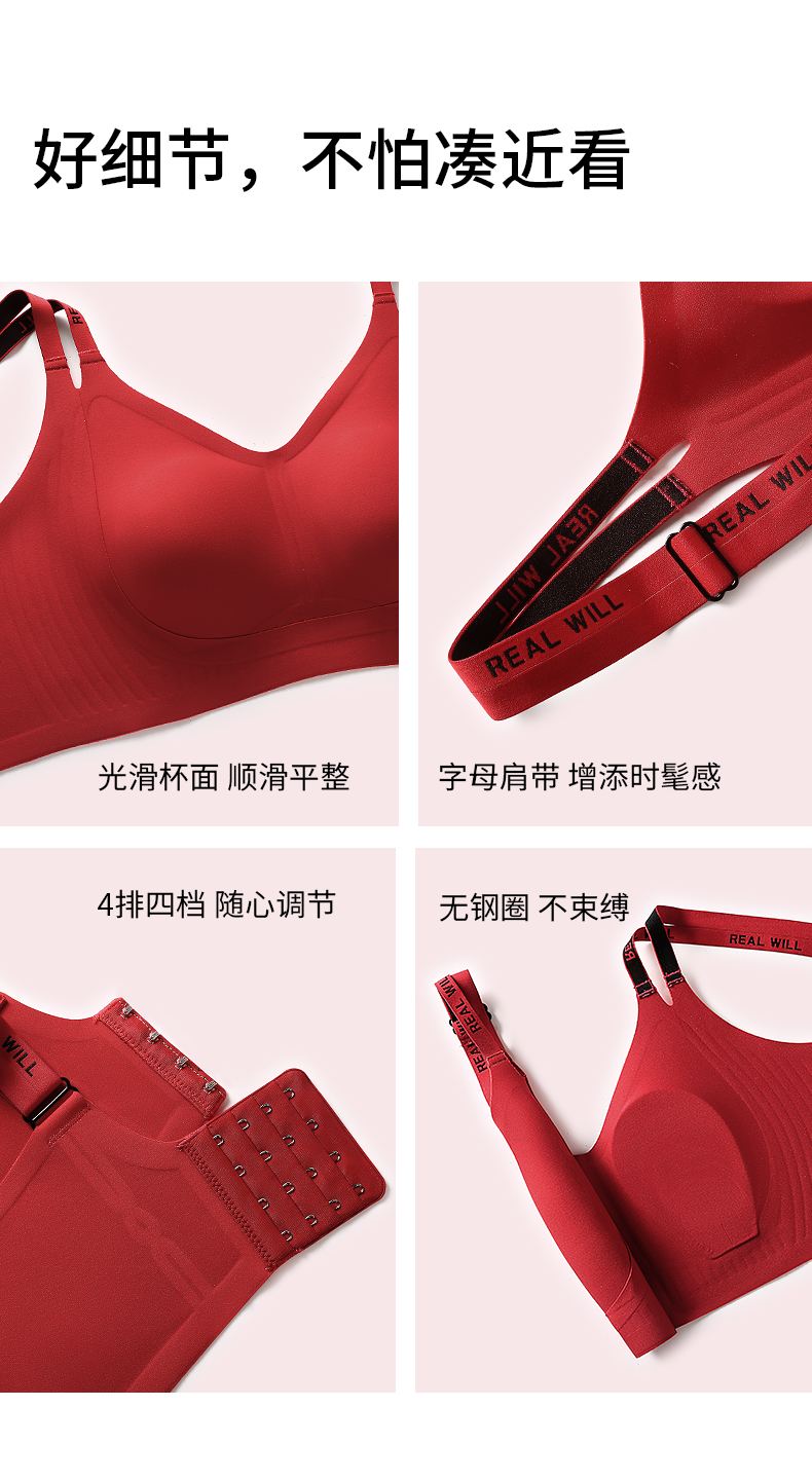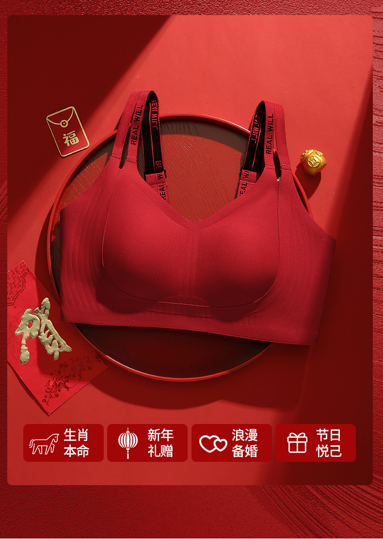 D1-【B-D杯】润微无痕红色内衣女本命年结婚大胸显小收副乳防下垂双肩带文胸罩 芸芸星影 【1分钱换购红袜子不需要加购物车,提交付款界面会显示】
