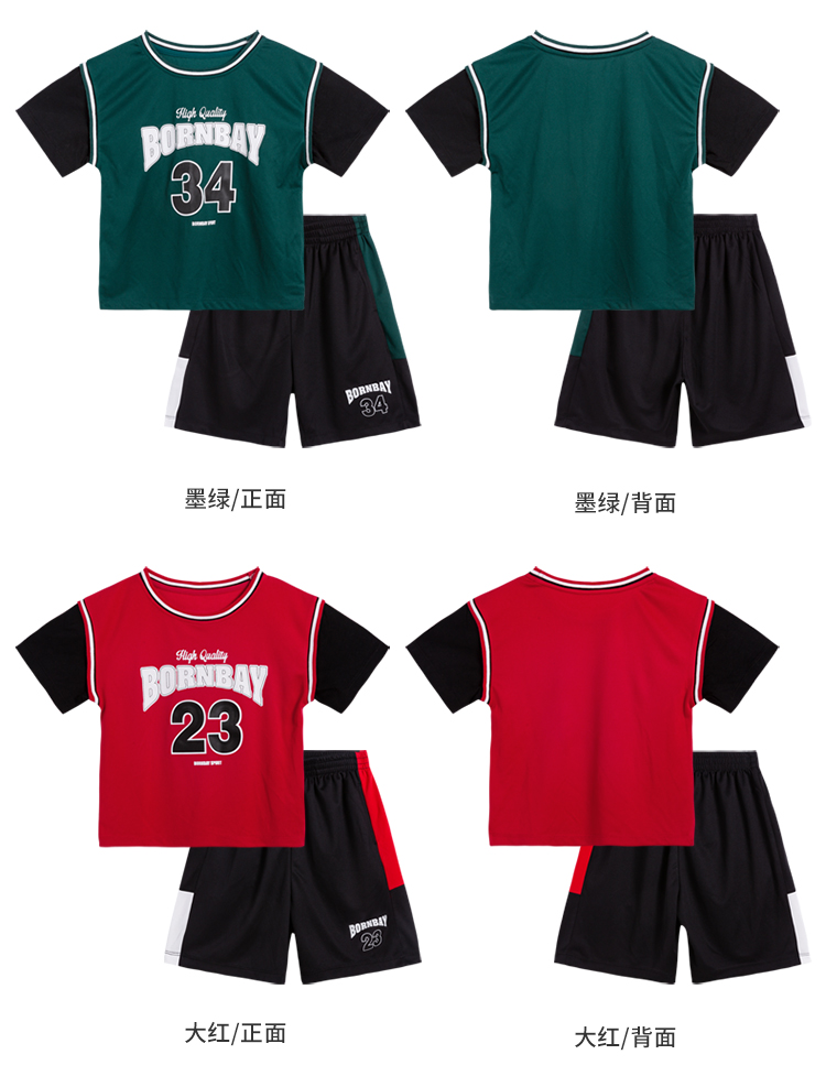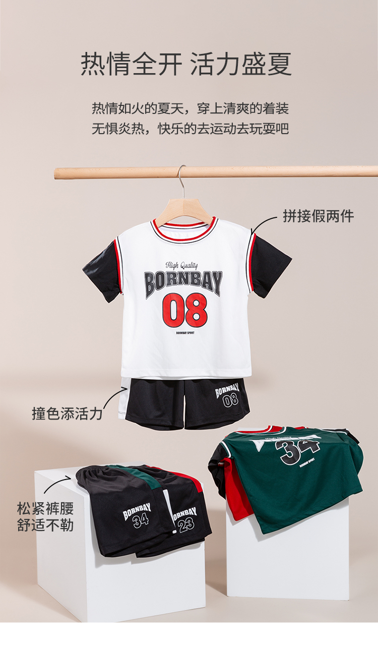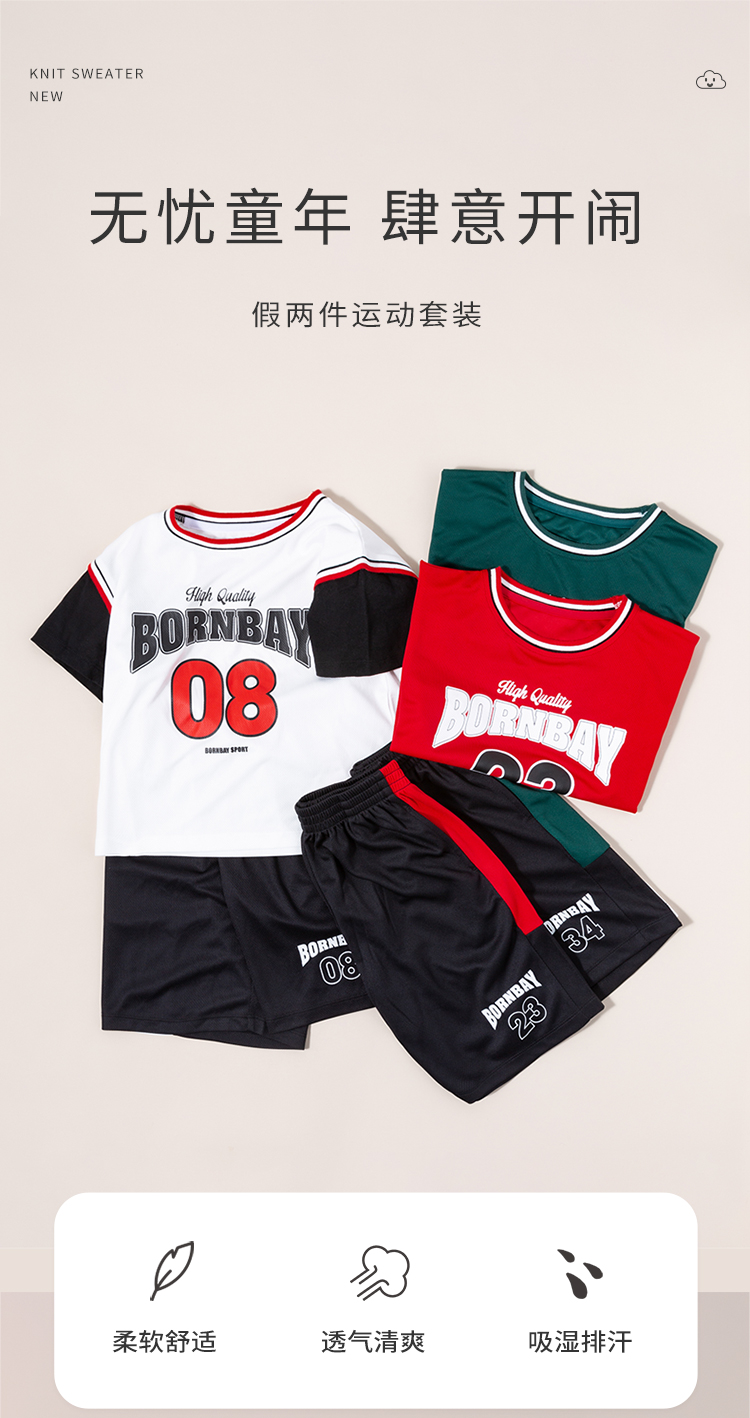 贝贝怡夏季新品儿童运动风套装男童清凉假两件短袖套装
