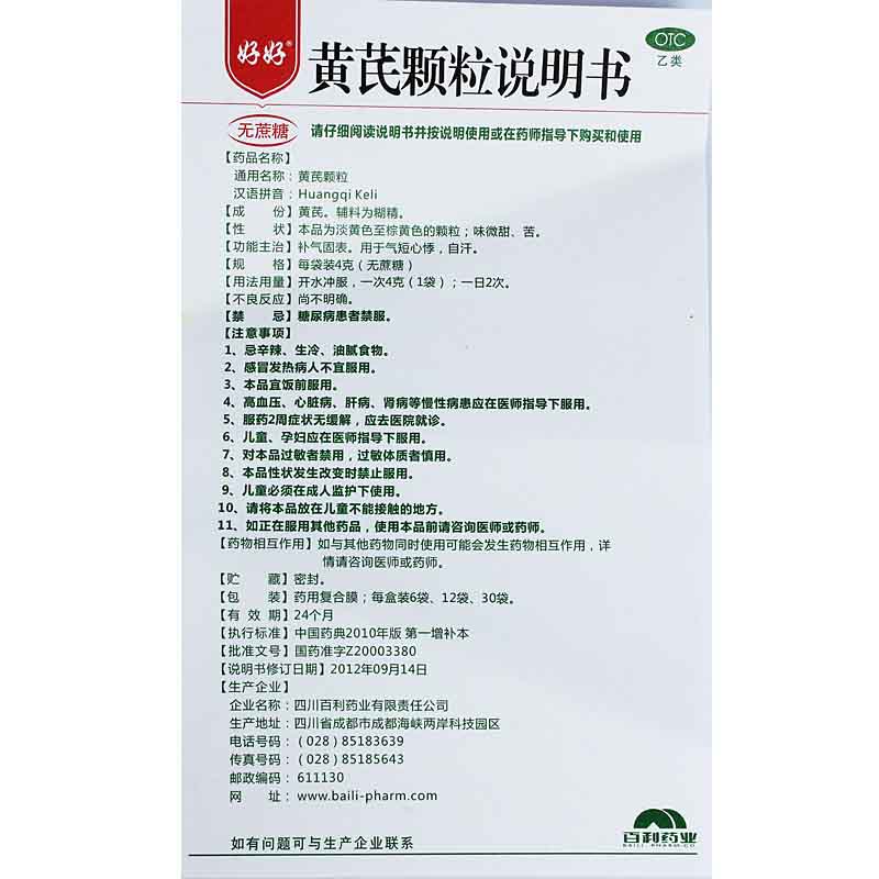 好好黄芪颗粒30袋无蔗糖 补气固表用于气短心悸自汗