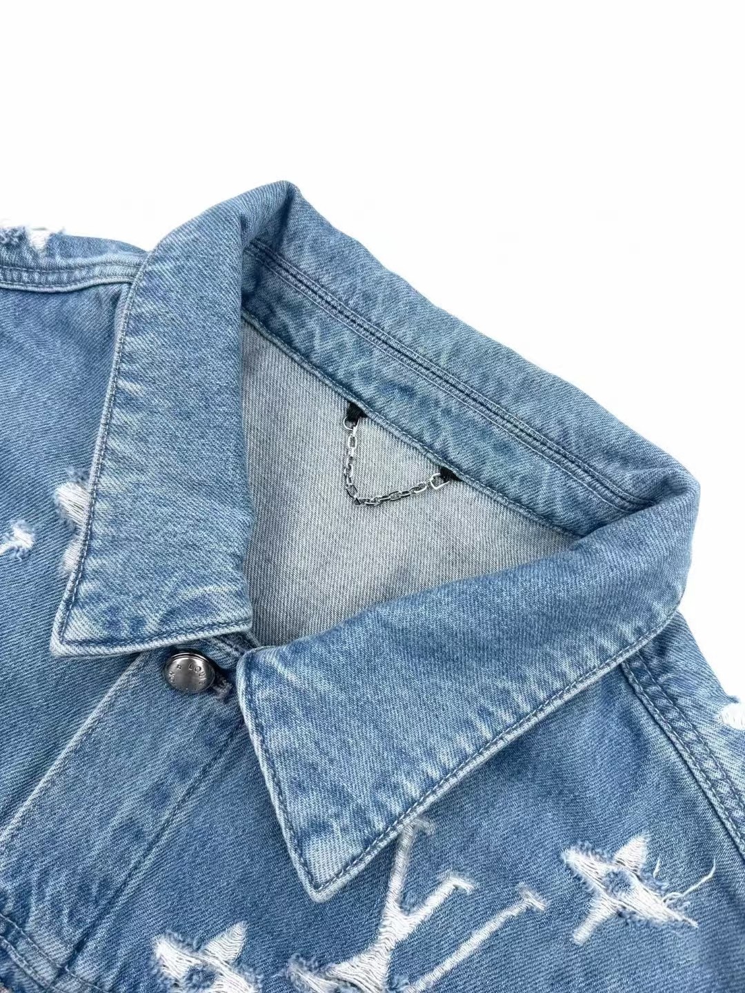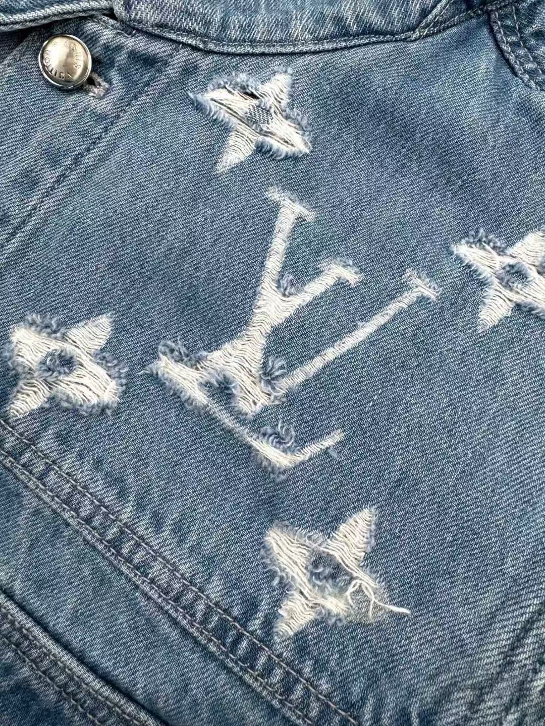 LOUIS VUITTON 路易威登秋季经典款LV 云朵狗狗系列水洗破洞牛仔外套