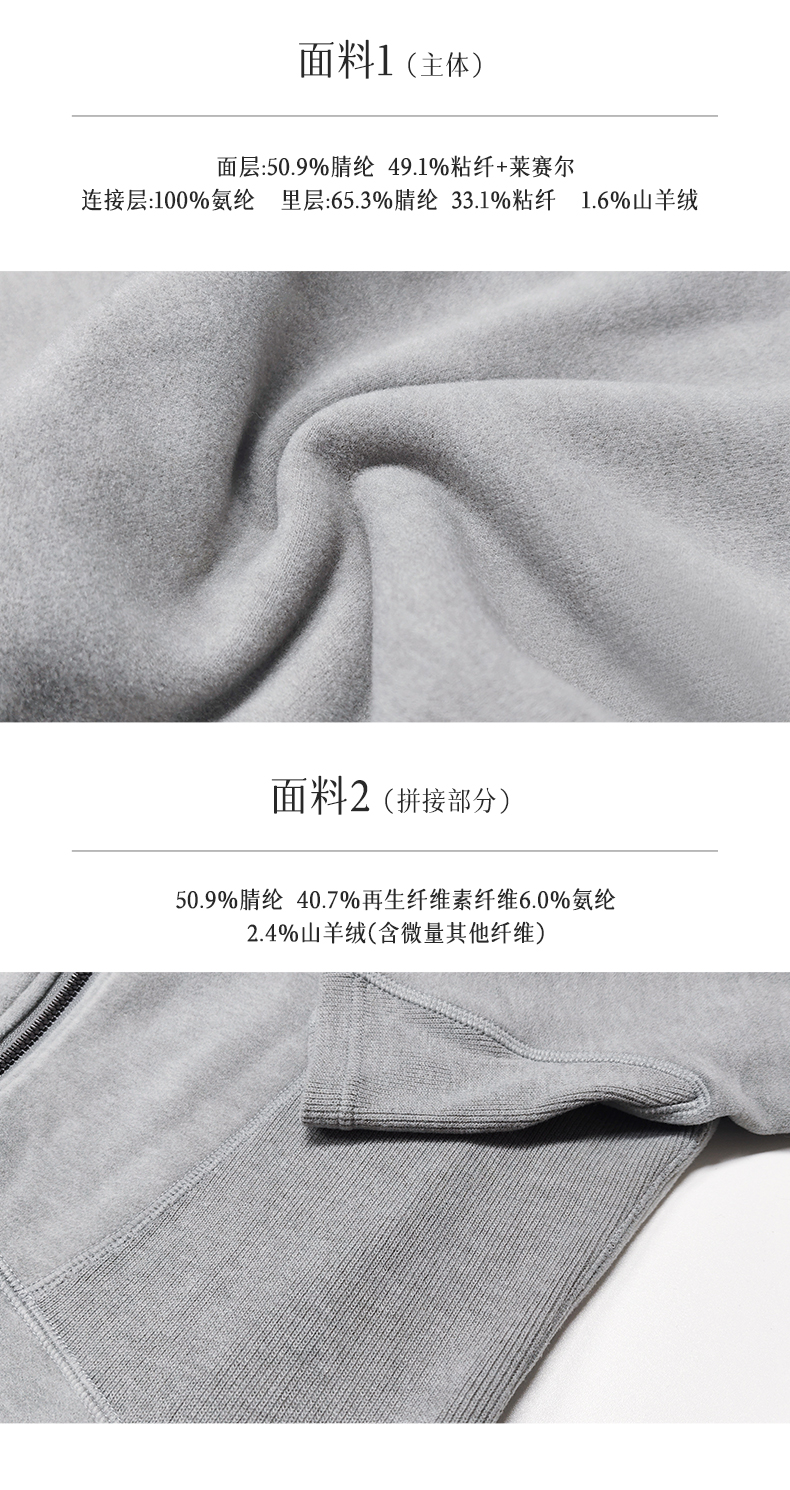 侧拼面料:再生纤维素纤维融入,透气微弹,拼接处更具设计层次。