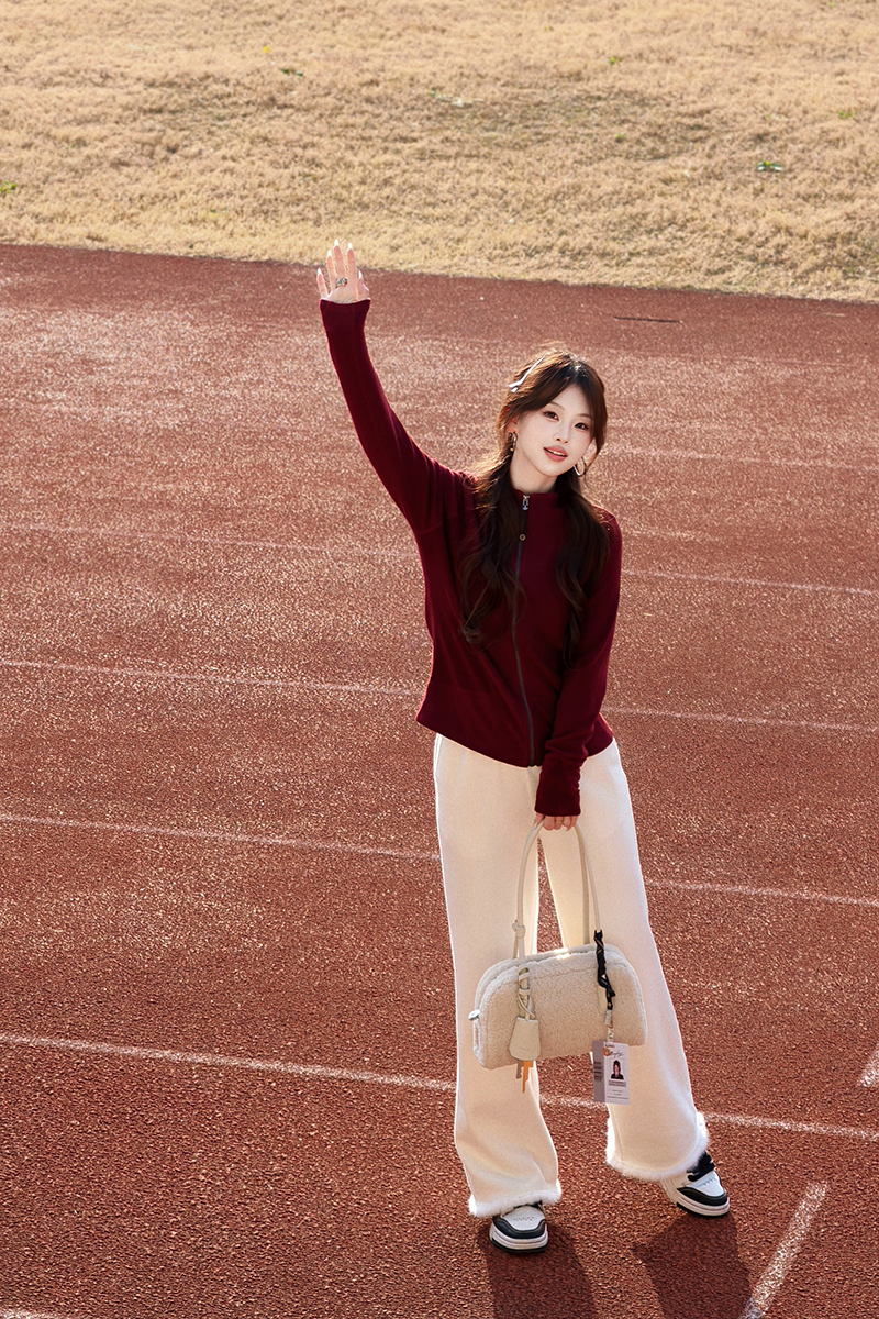 立领拉链羊绒外套