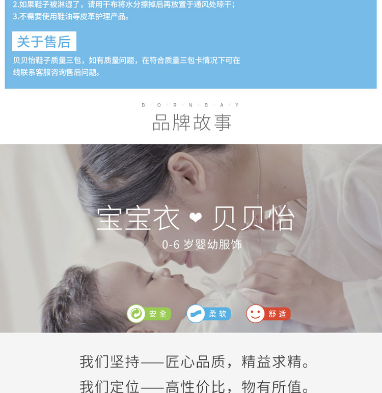 - 贝贝怡专注0-6岁婴幼儿服饰,坚持安全、柔软、舒适的产品理念,为千万中国家庭提供超高品质、安全可靠的婴幼儿服饰产品,妈妈放心,宝宝开心!