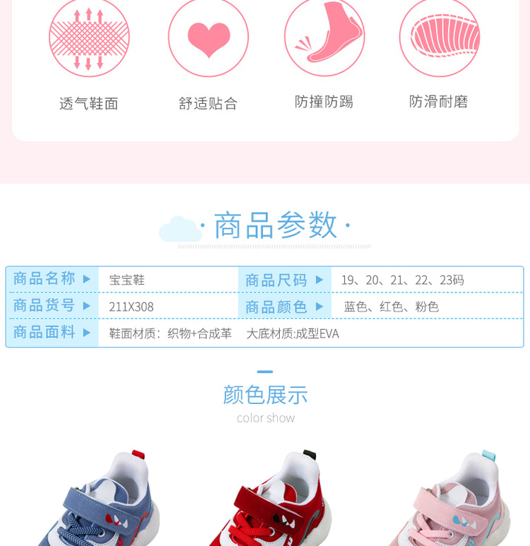 贝贝怡男女童春秋机能小童软底学步鞋运动鞋