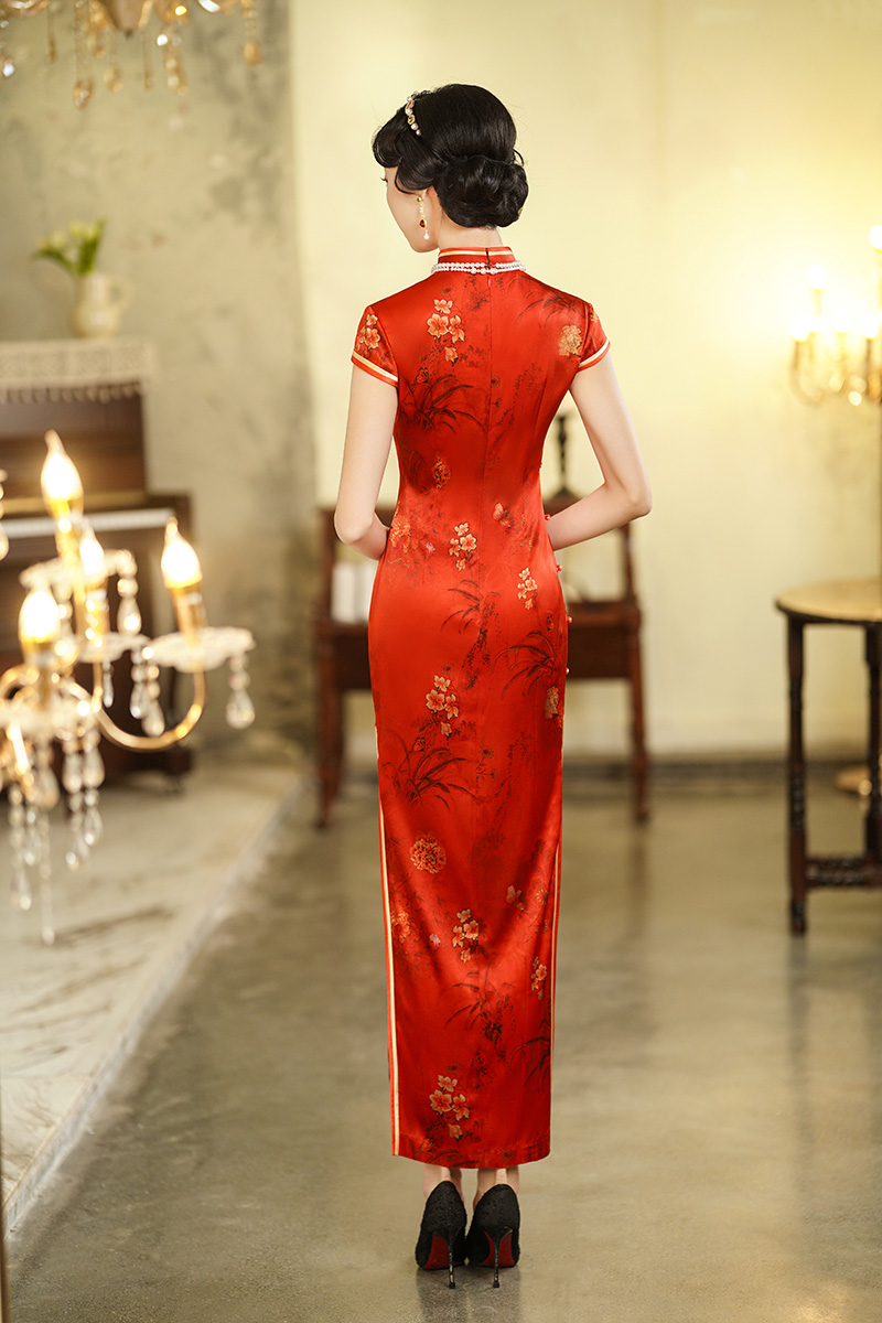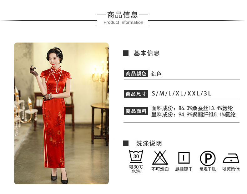 改良年轻款订婚礼服高考中考旗开得胜订珠盘扣印花旗袍裙 9522200043