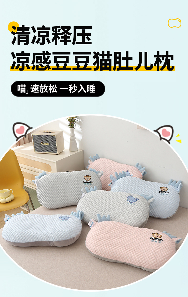 【夏凉枕猫肚凉感丝儿童枕芯】冰豆豆枕芯护颈椎凉枕头 学生记忆棉床品 猫肚触感柔软有支撑力 快速放松一秒入睡_ZSY