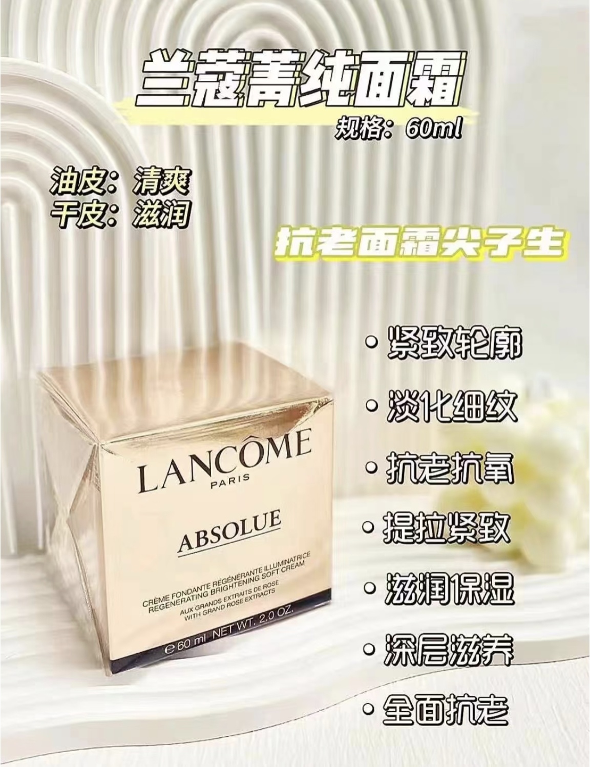 【兰蔻新版菁纯面霜60ml轻盈版岂滋润版】一夜回春的「黄金绷带」垮脸救星名不虚传“独 1无2的抗老面霜!直接养成嘭弹脸! 皮肤透到发光!!真的嘭起来了!!