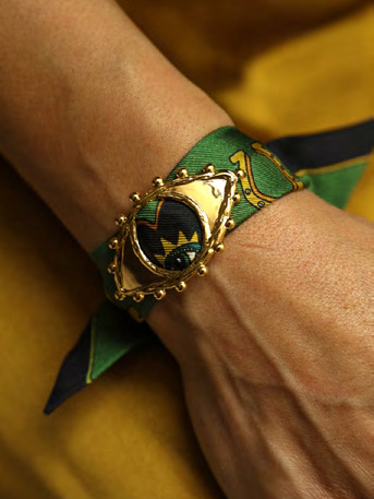 订购14周到|AN-NEE-ONOEIL-深绿色 幸运予你 4cm 丝巾装饰扣手镯[法国设计师]