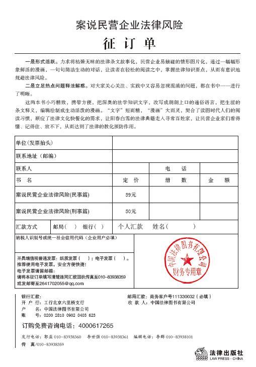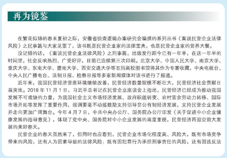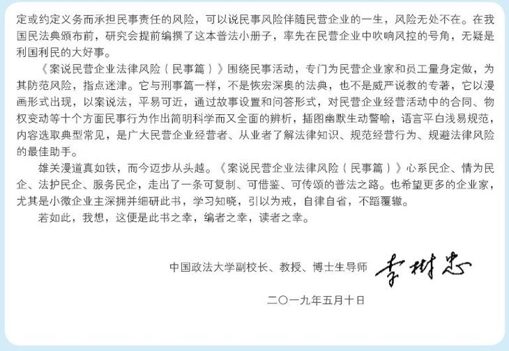 书名:案说民营企业法律风险(民事篇) 定价:59.0 ISBN:9787519734770 作者:柴学友等著 版次:1-1出版时间:2019-05