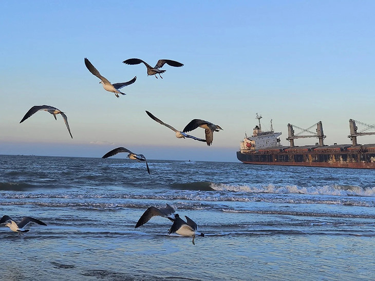 - 之后途经布鲁维斯号沉船打卡。它是一艘海边搁浅的来自巴拿马籍的货轮,2022年9月,受环流影响搁浅于山东威海那香海海域。