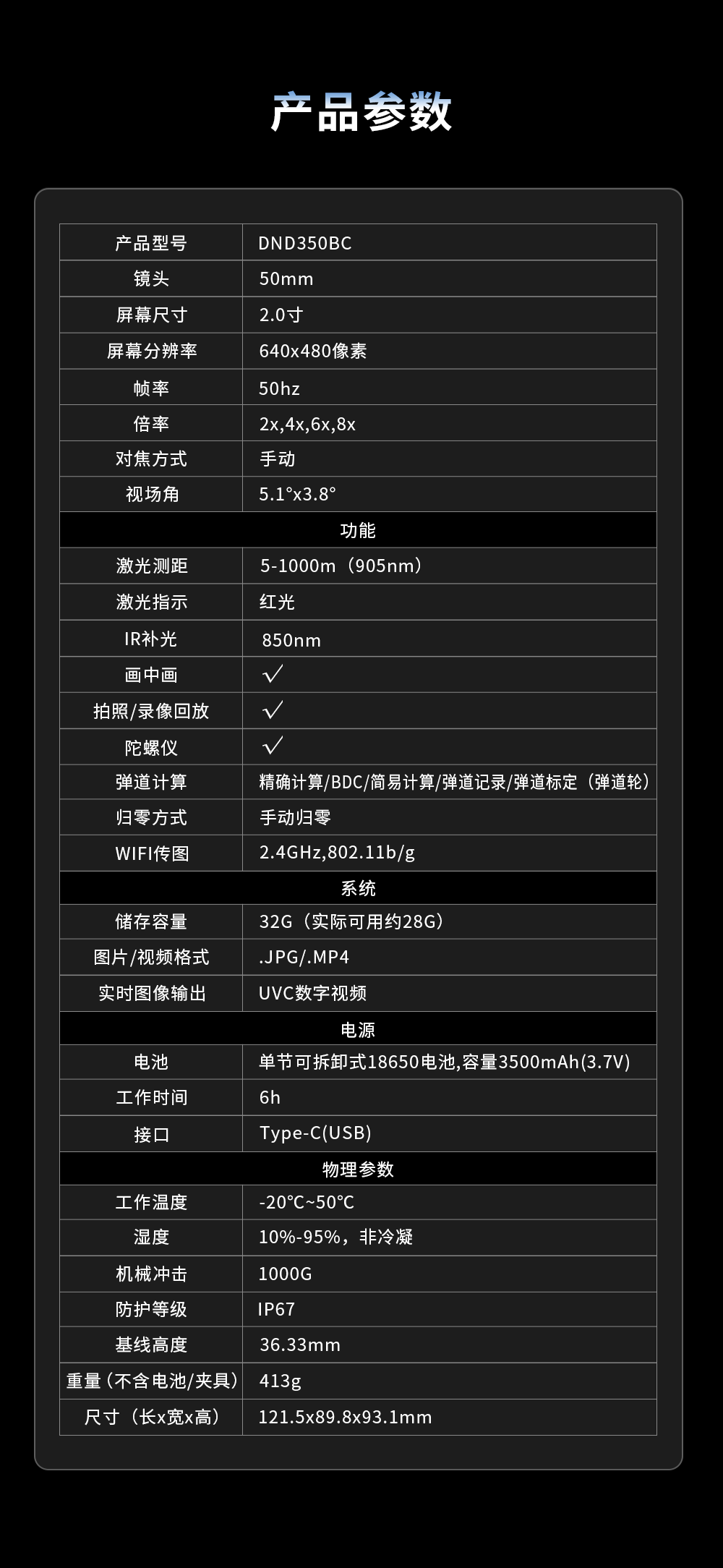 发现者方程豹夜视户外昼夜DND350BC电子测智能落点解算瞄