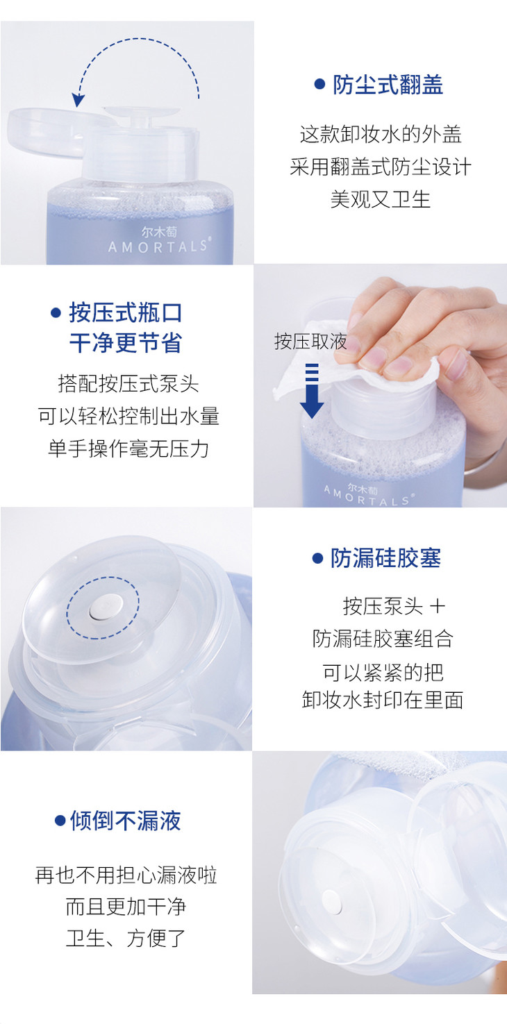 【包邮直发】【眼唇脸3合1】韩国 尔木萄 氨基酸按压卸妆水500ml+加送一包同款化妆棉50片