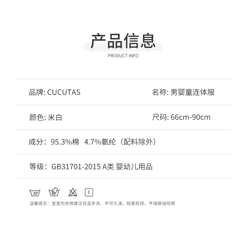 Cucutas男婴童连体服CY26SPW216米白66#-80#