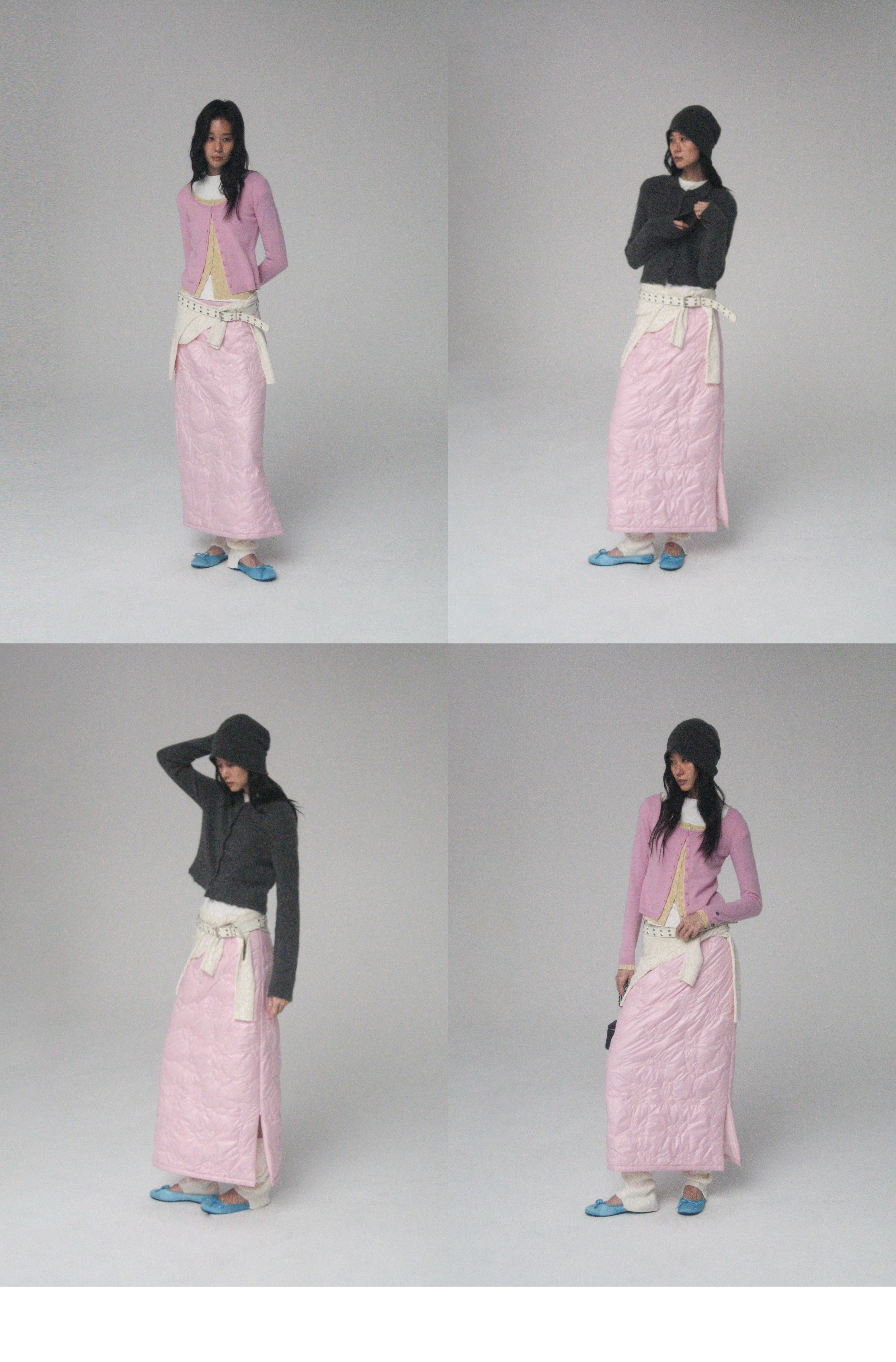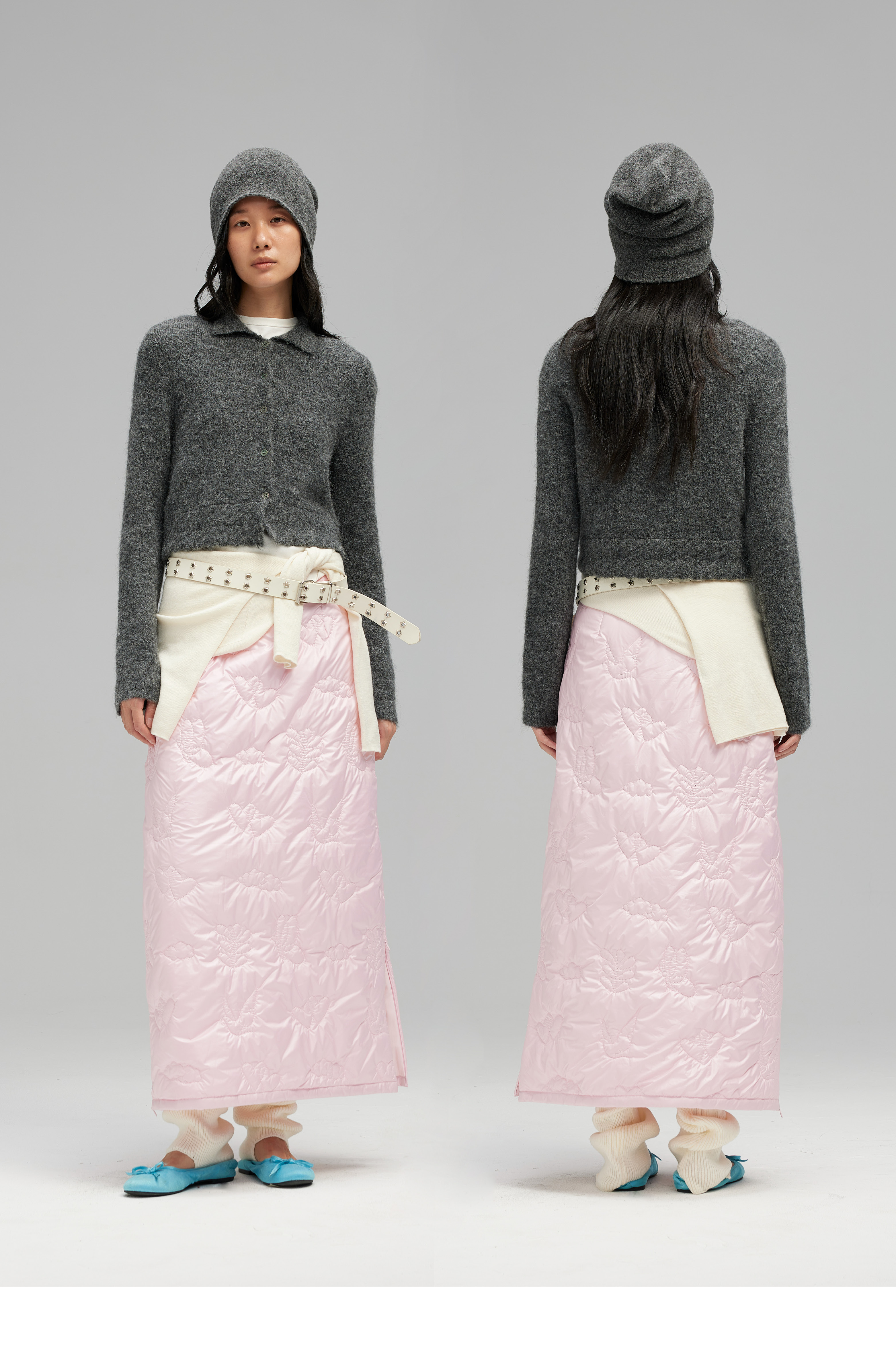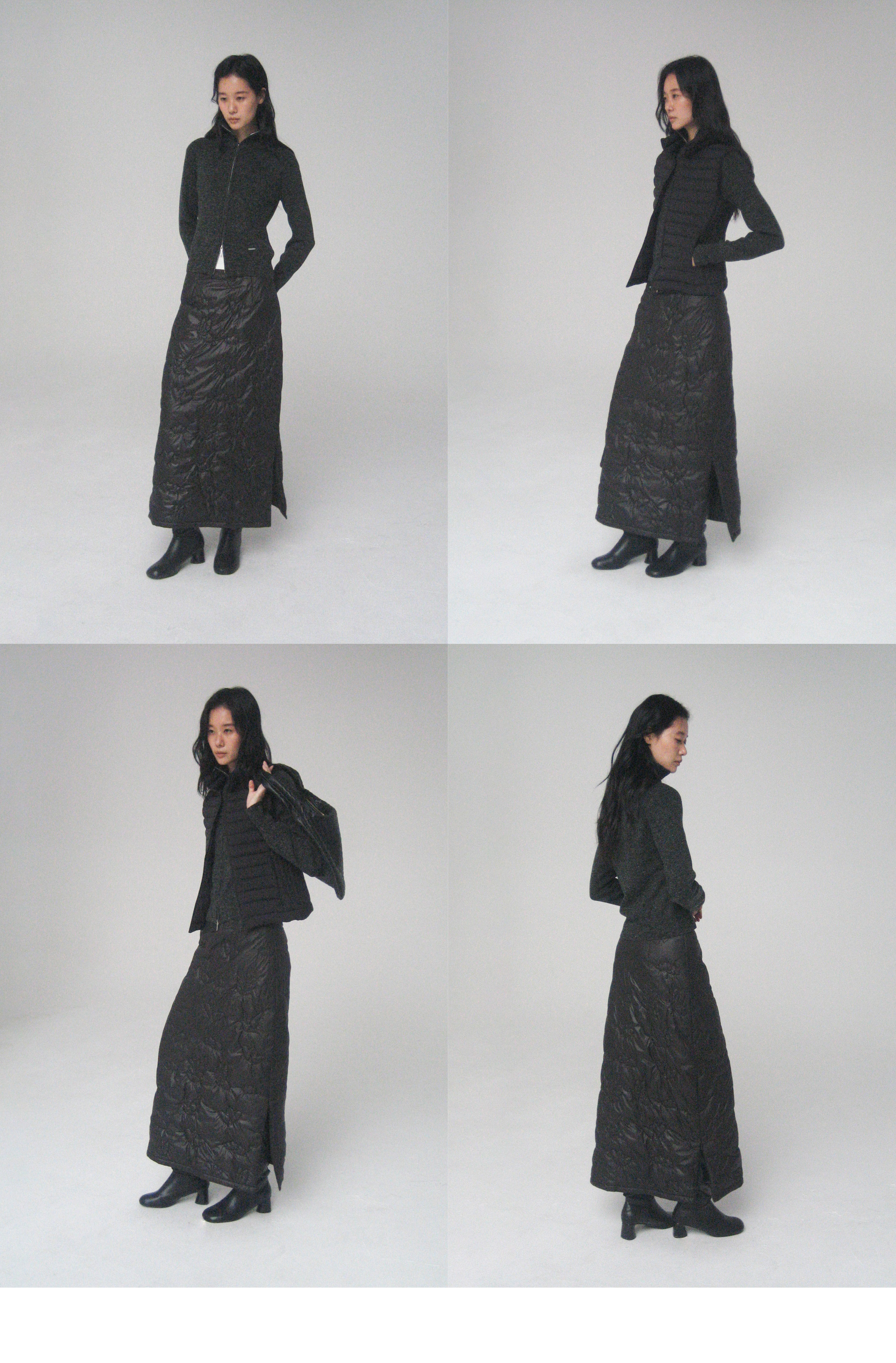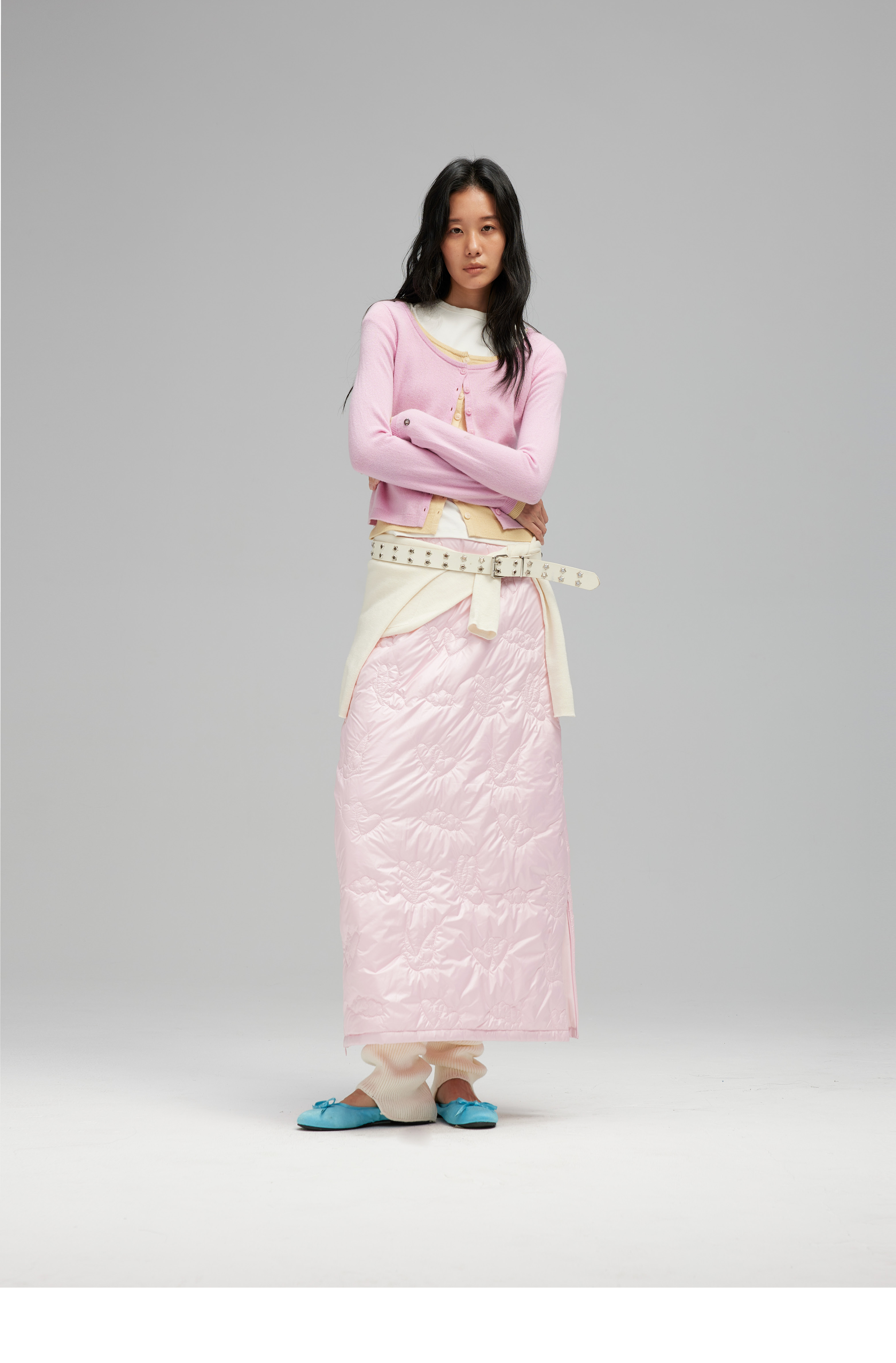 素舶 重工多图案绣花绗缝直筒中高腰下摆侧开叉夹棉保暖半身裙