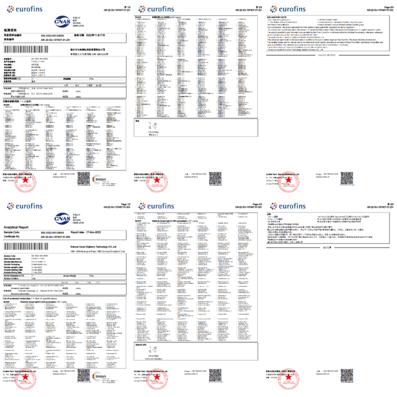 四、有机标准种植,确保无硫无农残,消费者吃的放心,以下是相关检测报告,567项农残,二氧化硫检测,黄曲霉菌等检测。