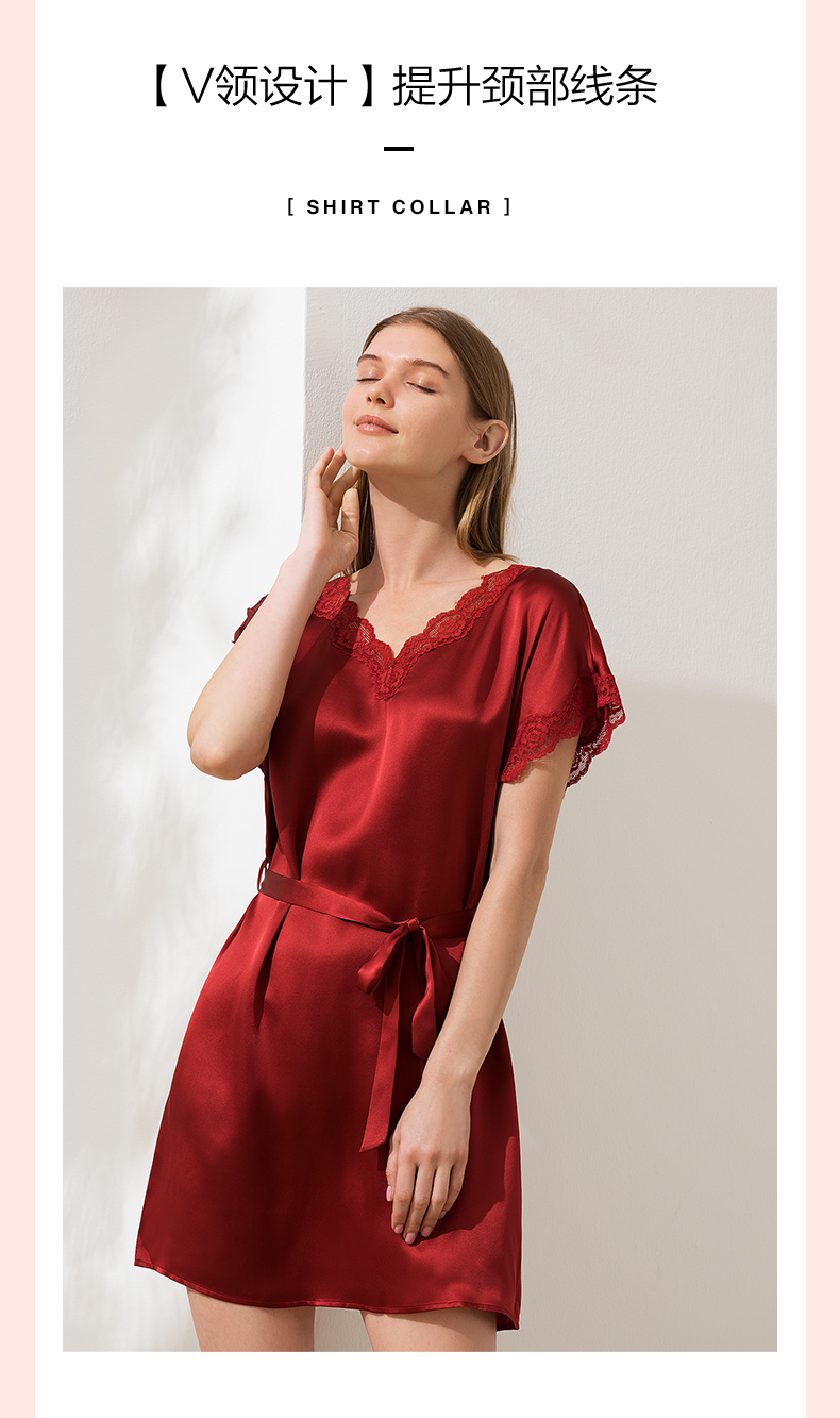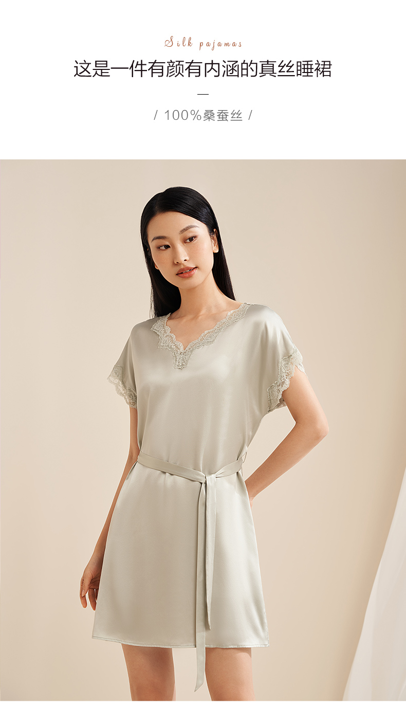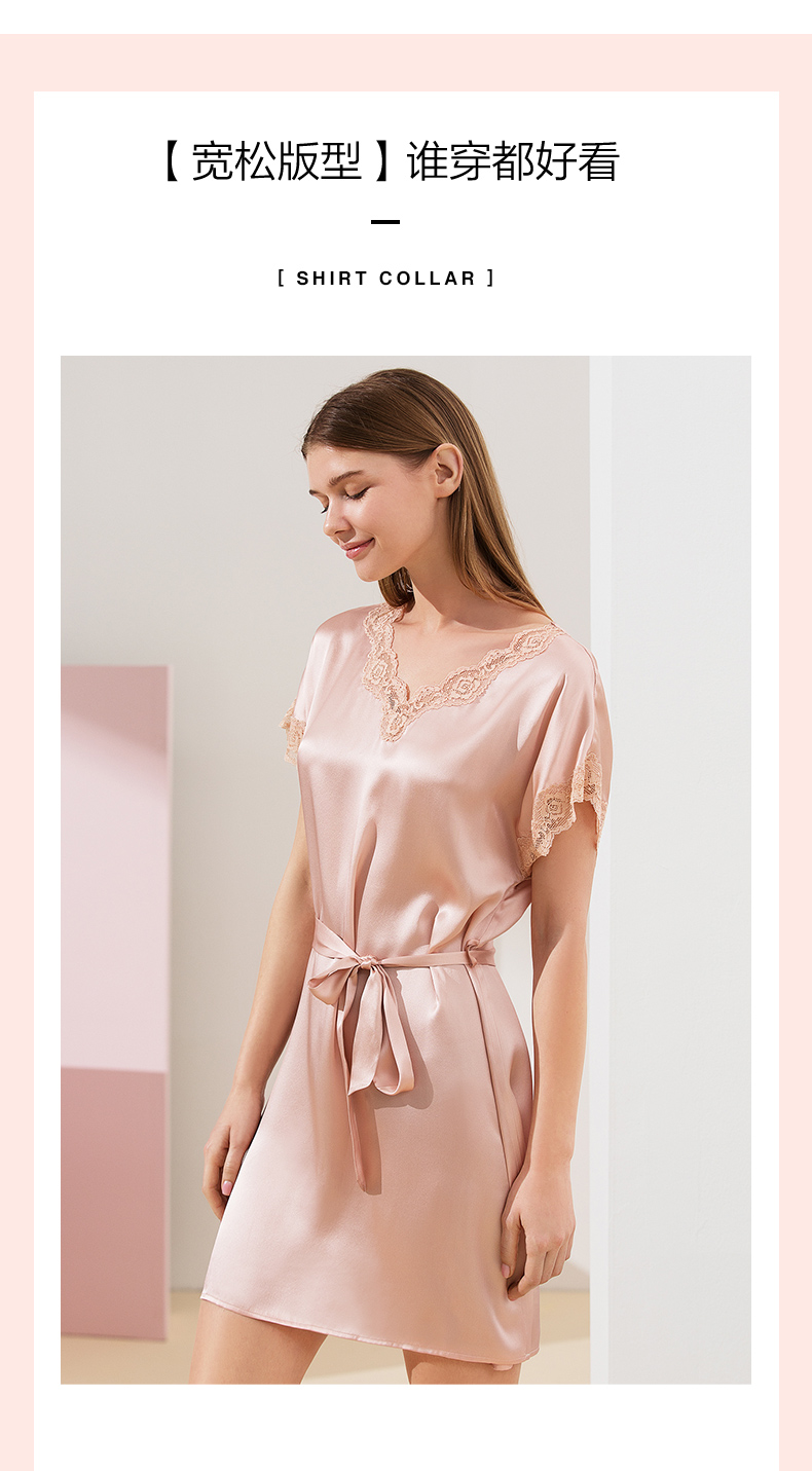 金三塔真丝睡裙女100%桑蚕丝短袖纯色可外穿家居服 (限价款) YSFAA323