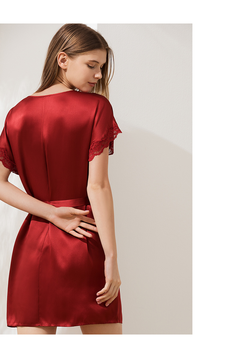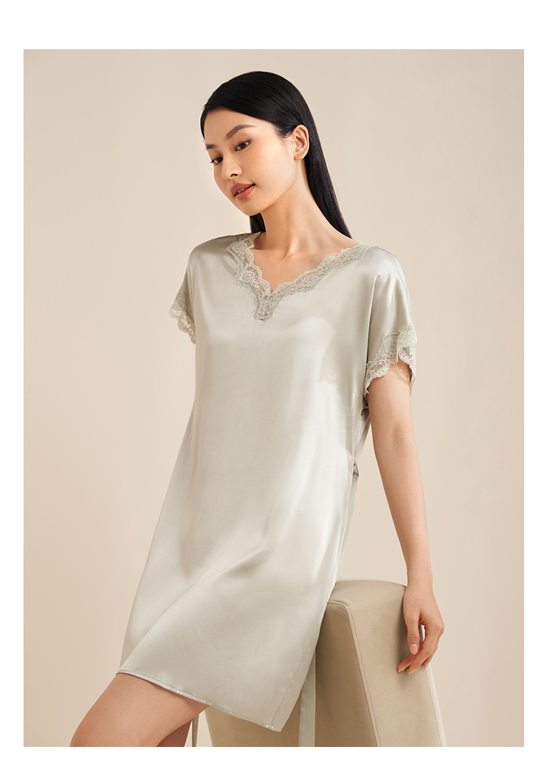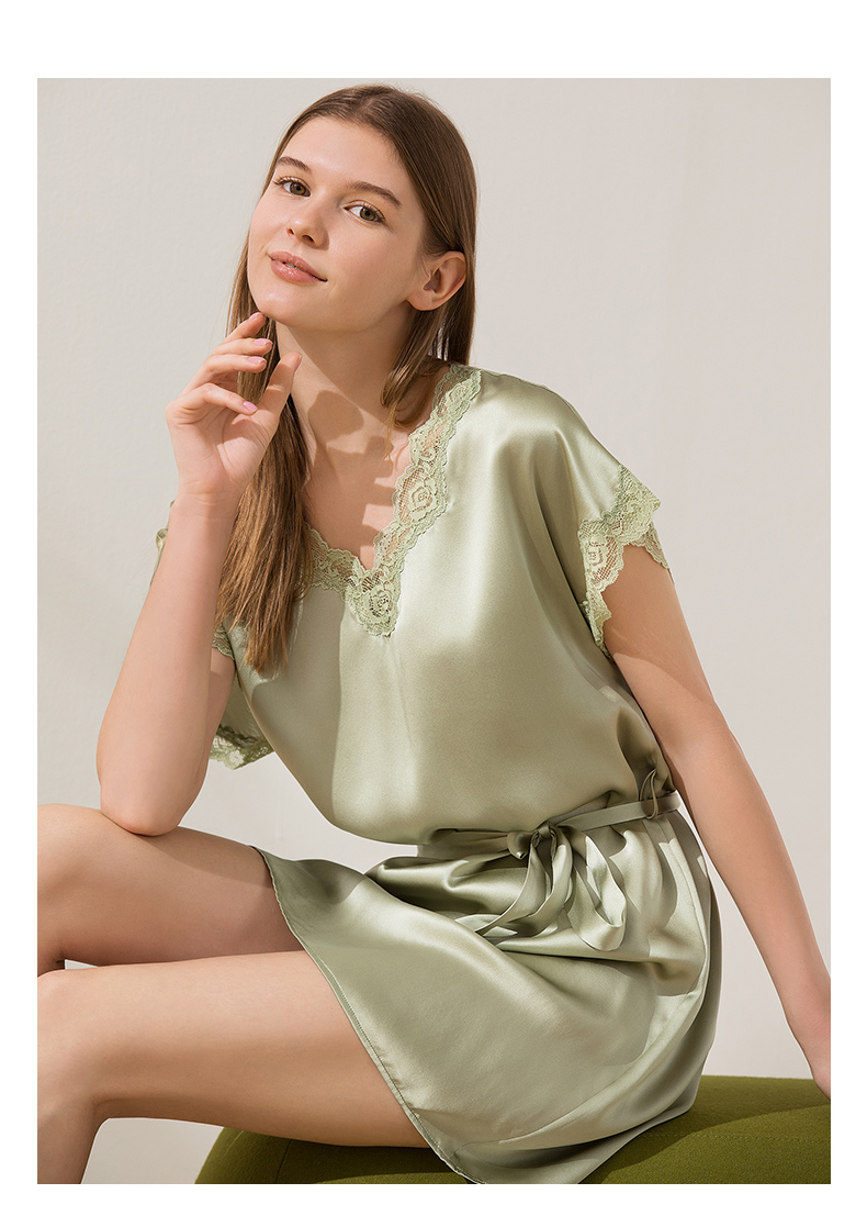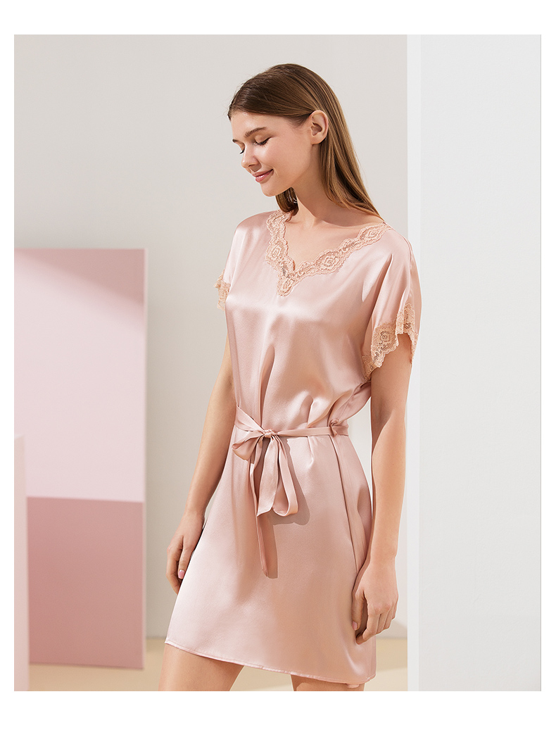金三塔真丝睡裙女100%桑蚕丝短袖纯色可外穿家居服 (限价款) YSFAA323