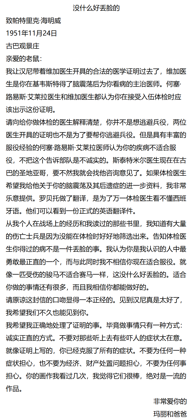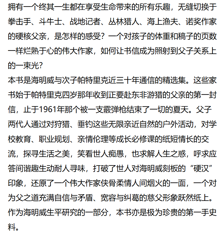 [布面精装]亲爱的老爸:海明威父子家书 [美]欧内斯特·海明威 帕特里克·海明威 著 姜向明译 百余封家书 上海译文出版社