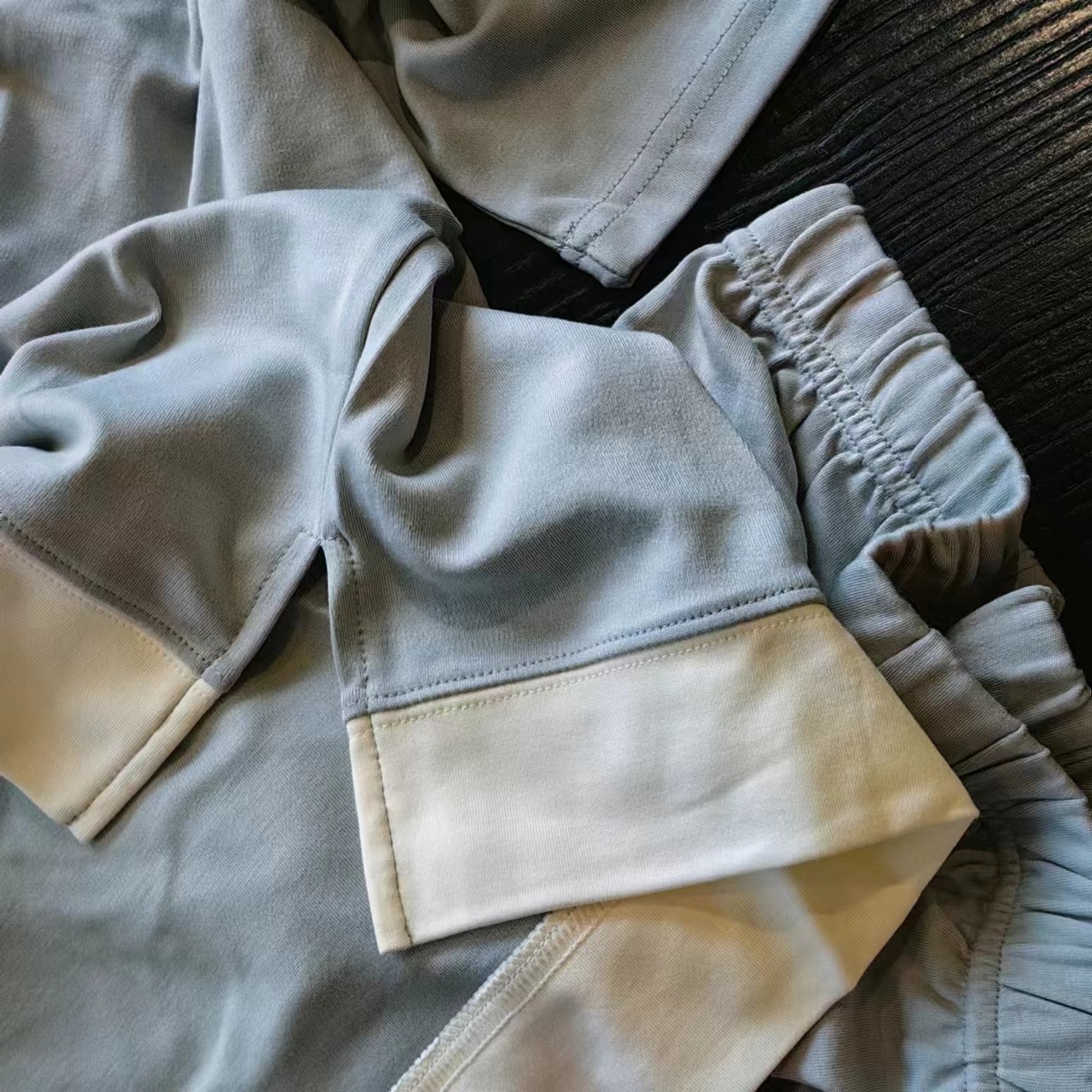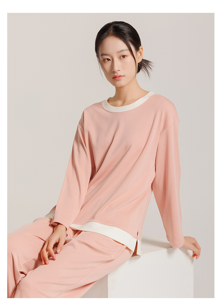 撞色圆领套装