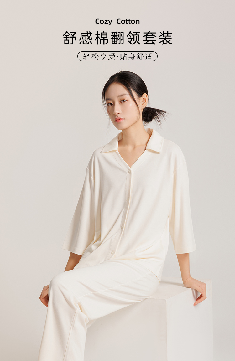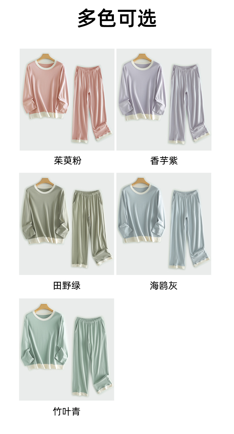 除了舒适,穿着好看也很重要!圆领和翻领两款,都很大方得体,上衣+长裤也非常实用,宽松显瘦,不勒脖子不溜肩,立体剪裁也恰到好处隐藏了多余赘肉,质感垂坠,对身材的包容性更大,活动自在无束缚感,无论是休闲追剧还是做家务都利落不邋遢!