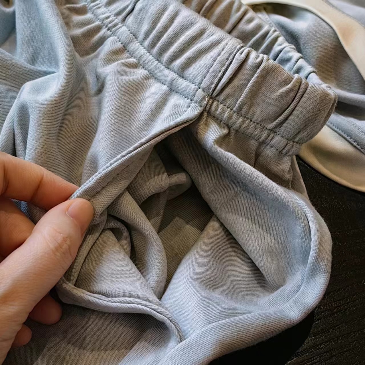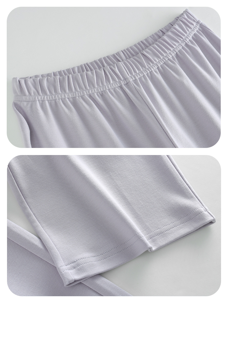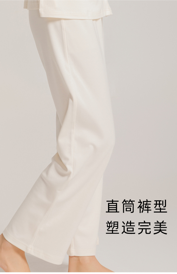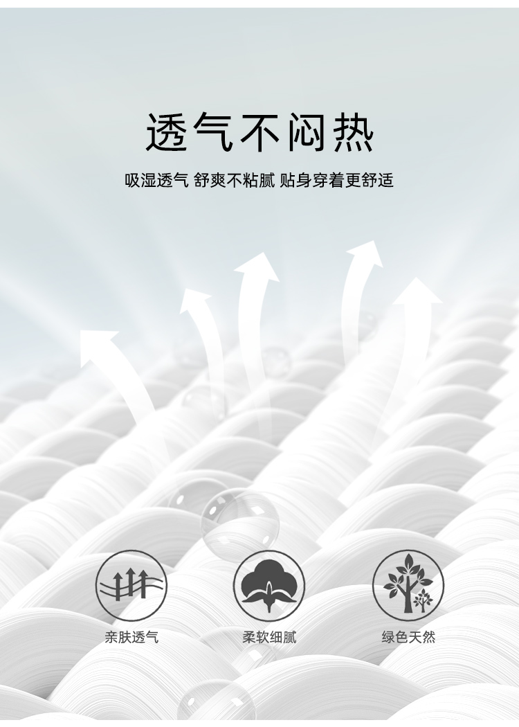家居服用的都是舒感棉哦,特别添加新疆长绒棉,饱满度高、纤维长、表面洁白光滑,软糯度堪比羊绒,纺成的纱线也更细腻,保湿透气、吸水性高,大大提升了面料的柔软度和光泽感,轻薄贴肤,仿佛第二层肌肤般舒适,与普通的家居服相比,也更加垂顺,质感十足。此外,面料中还添加了再生纤维素纤维(莫代尔),柔软有弹性,不易变形、起球,无静电,不易发皱,吸湿透气性也非常优秀,热气能迅速通过, 即使突然回温穿它睡觉也不怕闷汗!