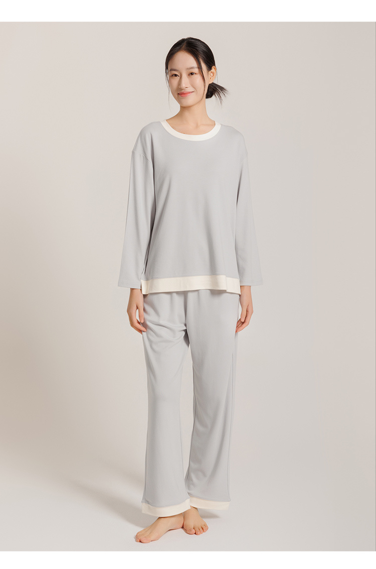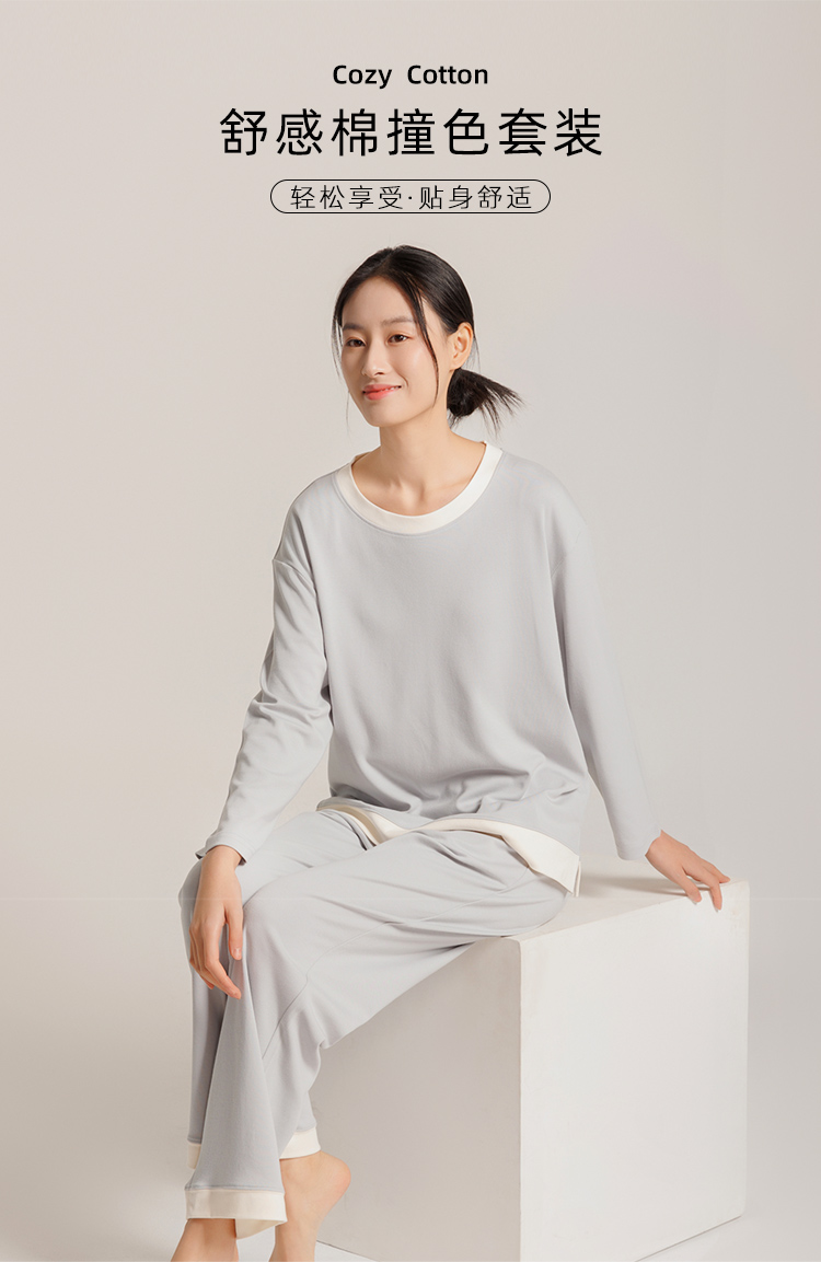 [屁侠推荐]米馨悦 舒感棉撞色圆领/翻领开衫家居服套装 亲肤舒感棉 透气舒爽细腻 一衣两穿