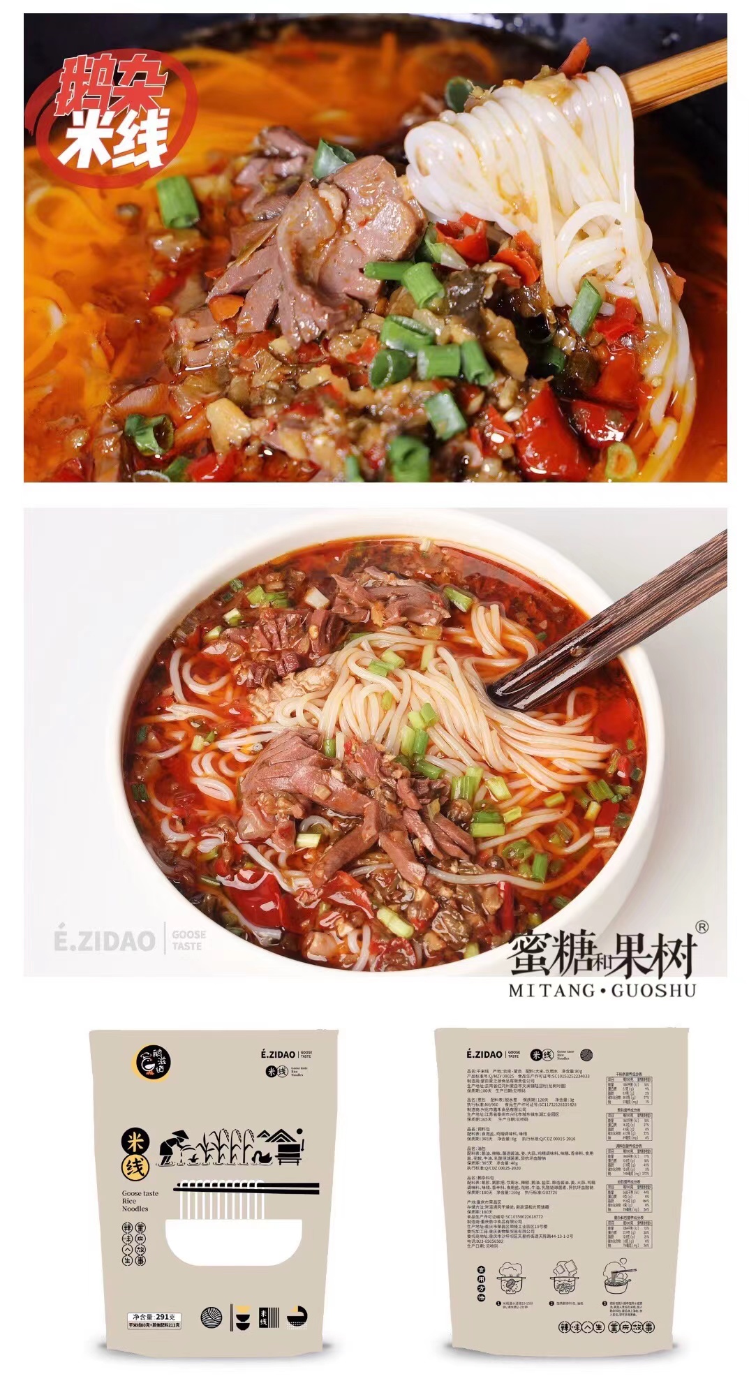 每袋净含量291g(米线80g+鹅杂料包160g+油包40g+调料包8g+葱包3g)