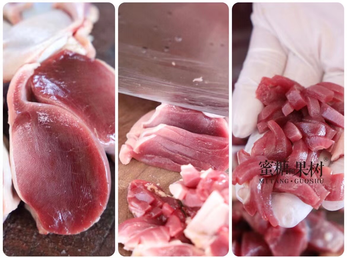 3️⃣鹅胗手工切花,能完美保留鹅胗口感,和机器切片完全不同。