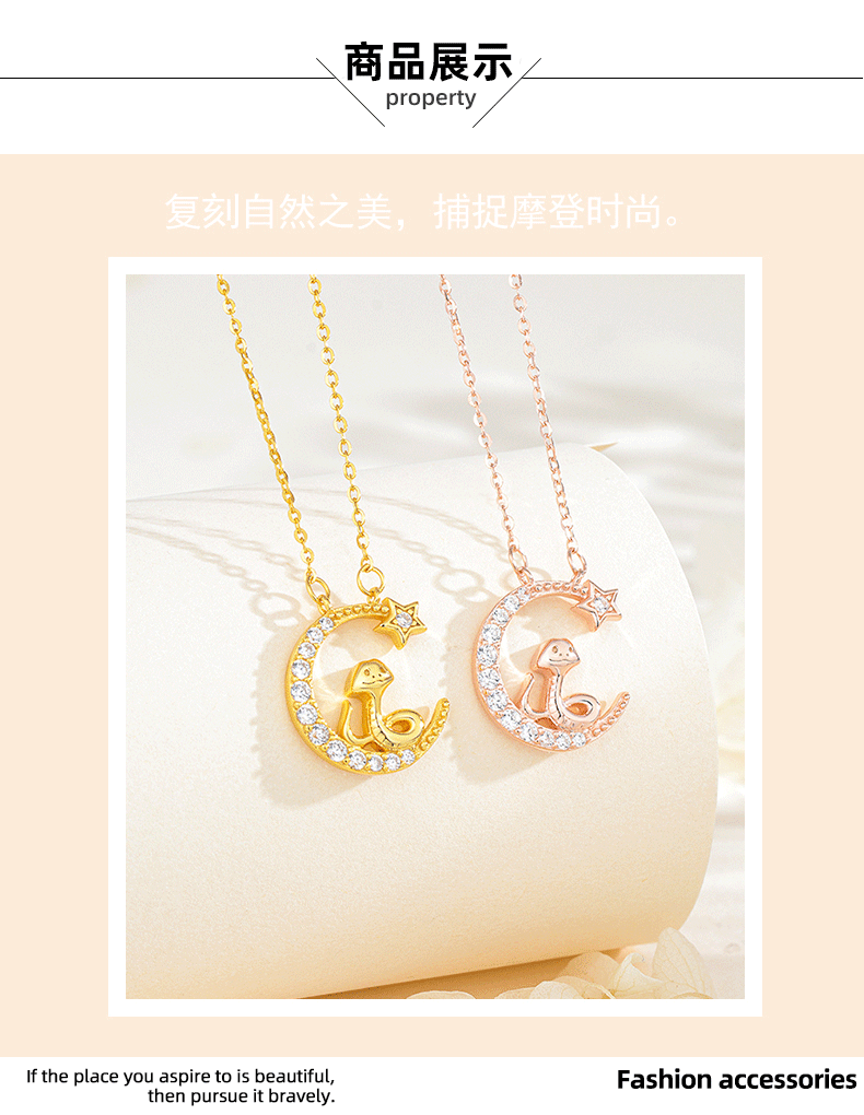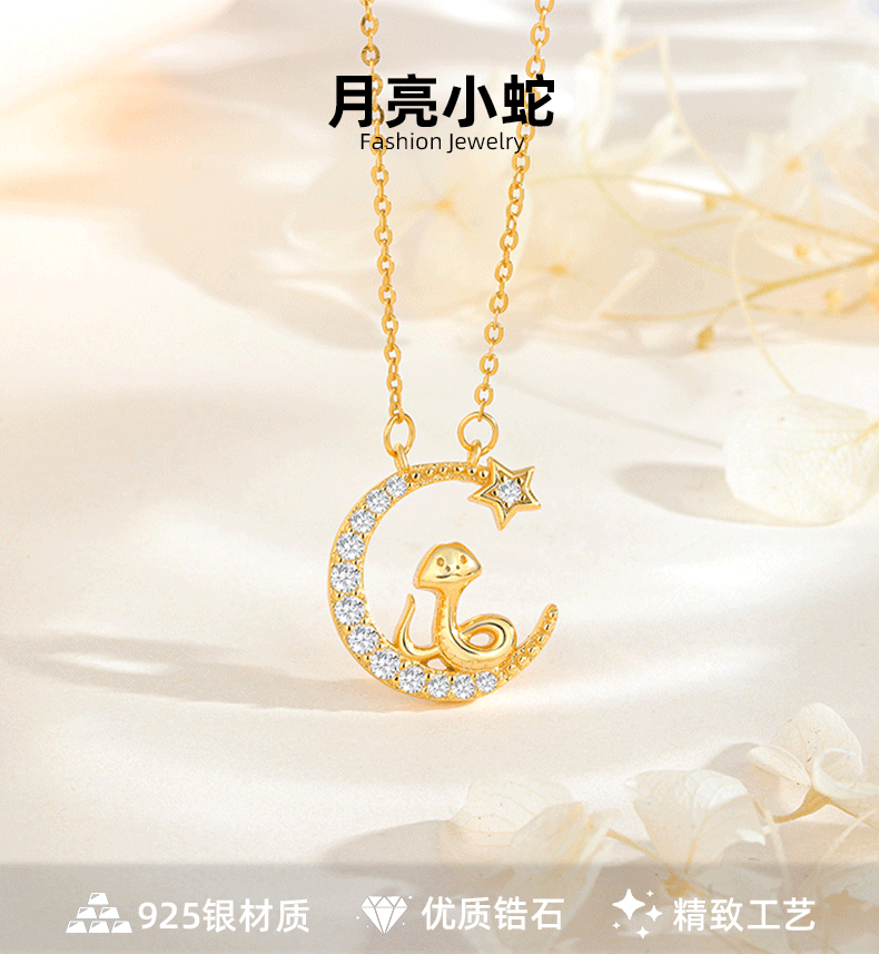 【蛇年限定❗️S925纯银月亮小蛇项链】吉祥福礼,戴来好运,纳福开运!女生肖本命年镶钻高级感送女生礼物闺蜜新年年货礼盒情人节