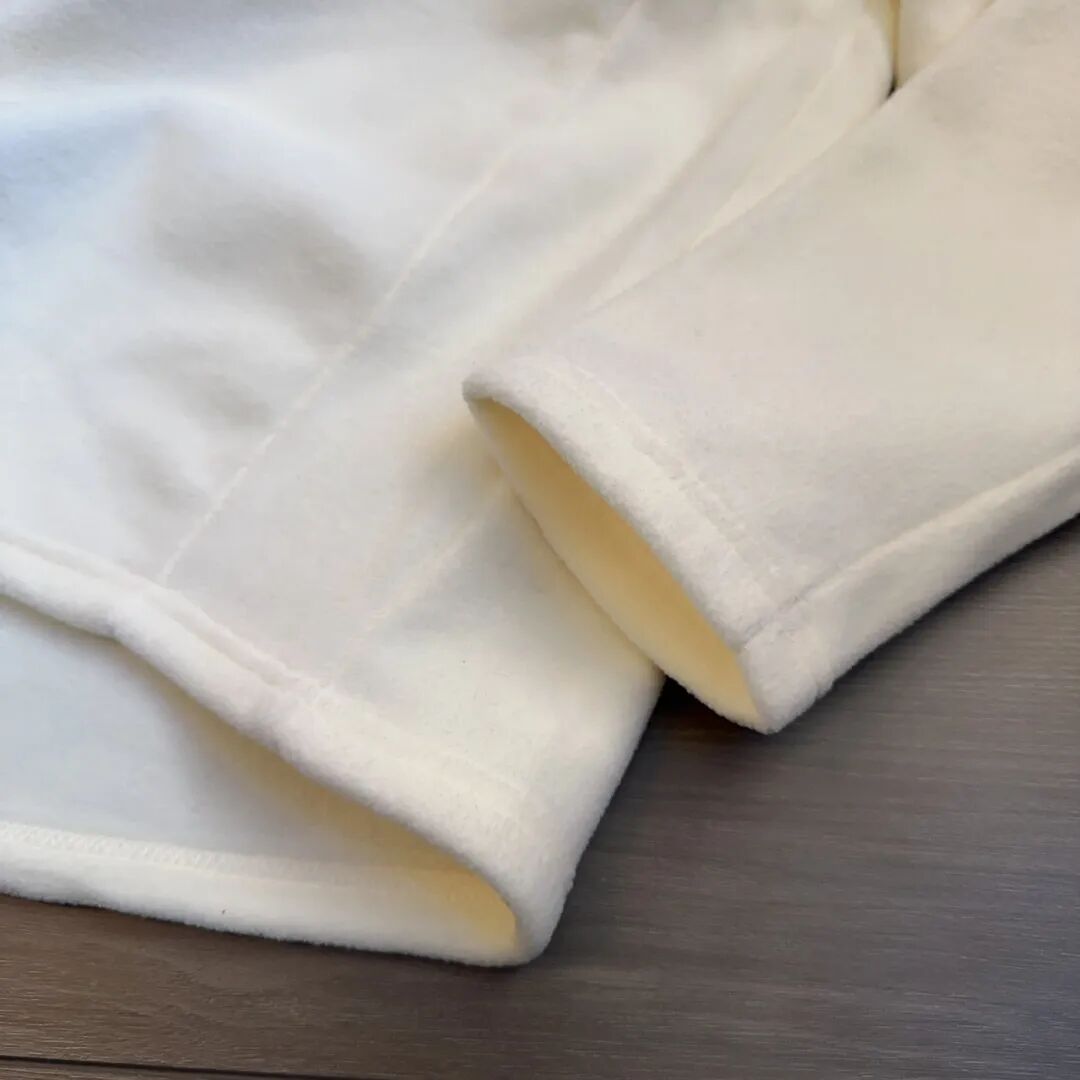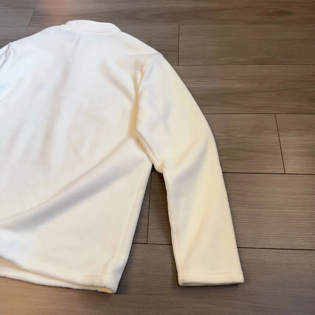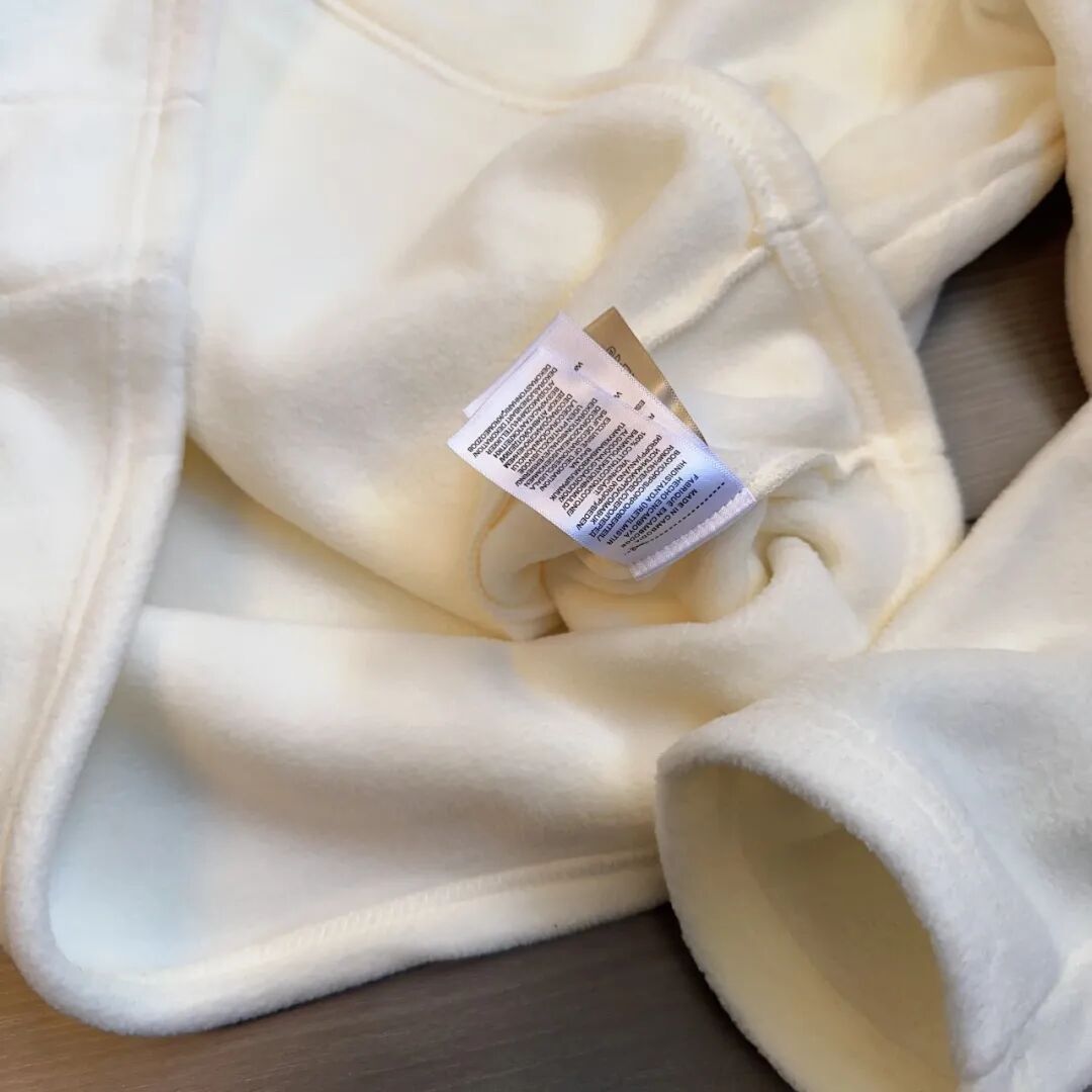老钱感拉满的米白配色,双面磨毛摇粒绒,绒面细腻。春秋可单穿,冬天可当做内搭保暖层,比常规白色要耐脏,碰到灰尘什么的拍拍就掉了,很好打理。