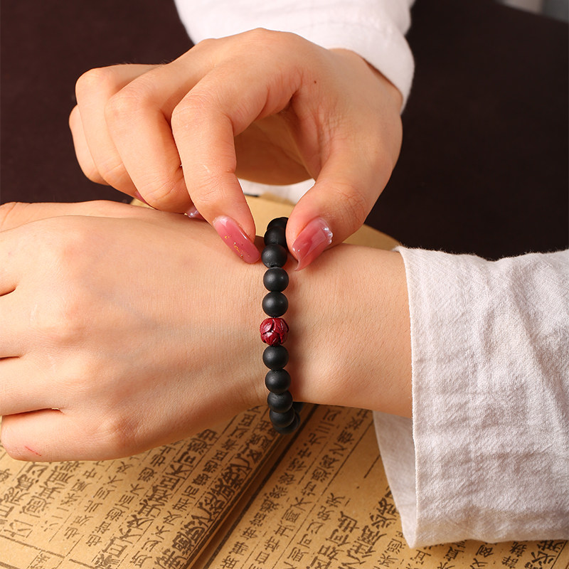【祈愿吉品】药柏莲花沉香朱砂男女手链
