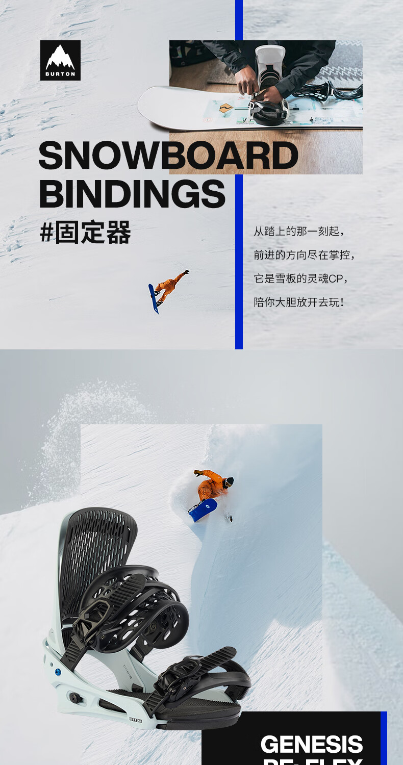 【七折清仓】BURTON伯顿男士GENESIS BALLAD BLUE 单板固定器105471