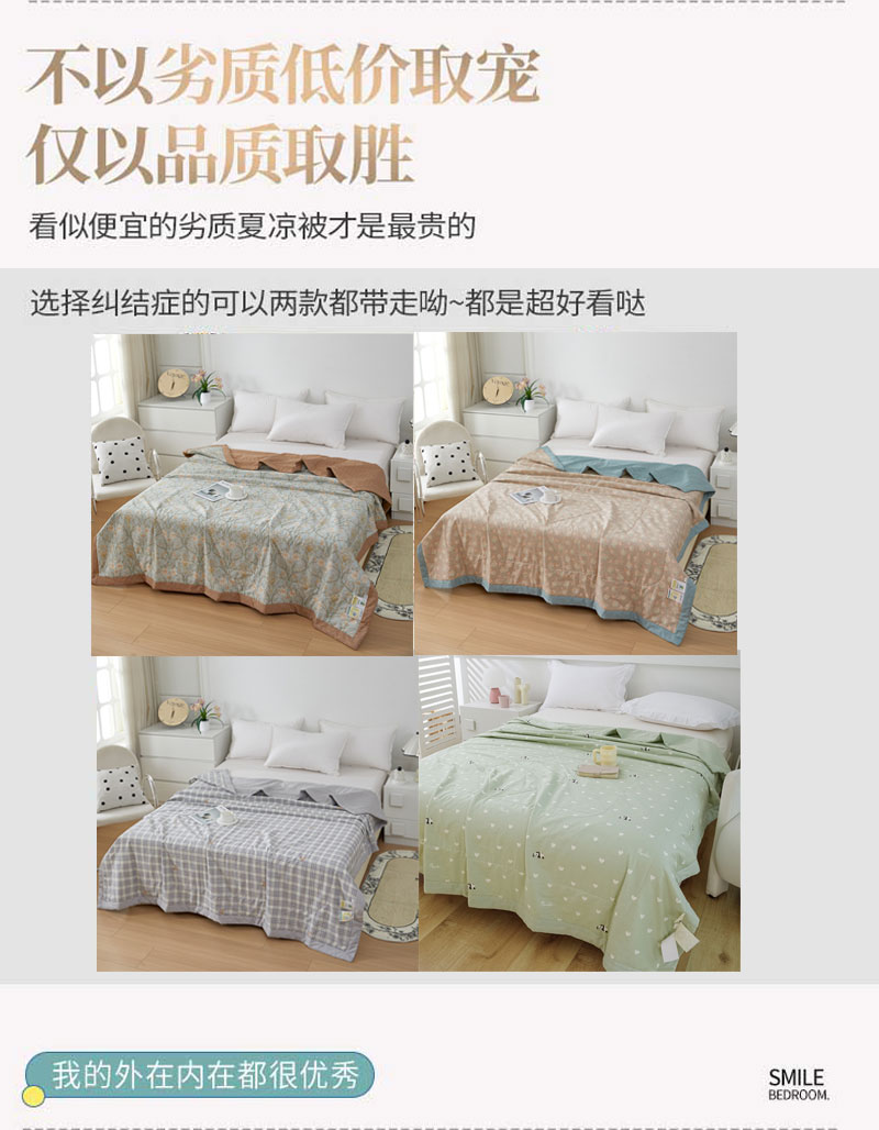 买家须知:夏凉被是纯棉材质制品, 清洗后会适当缩小,还请亲亲谅解。
