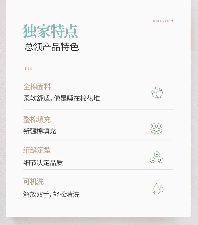 锁边(夏被侧面有锁边工艺,机洗不会使棉花缩进去也不会结团)