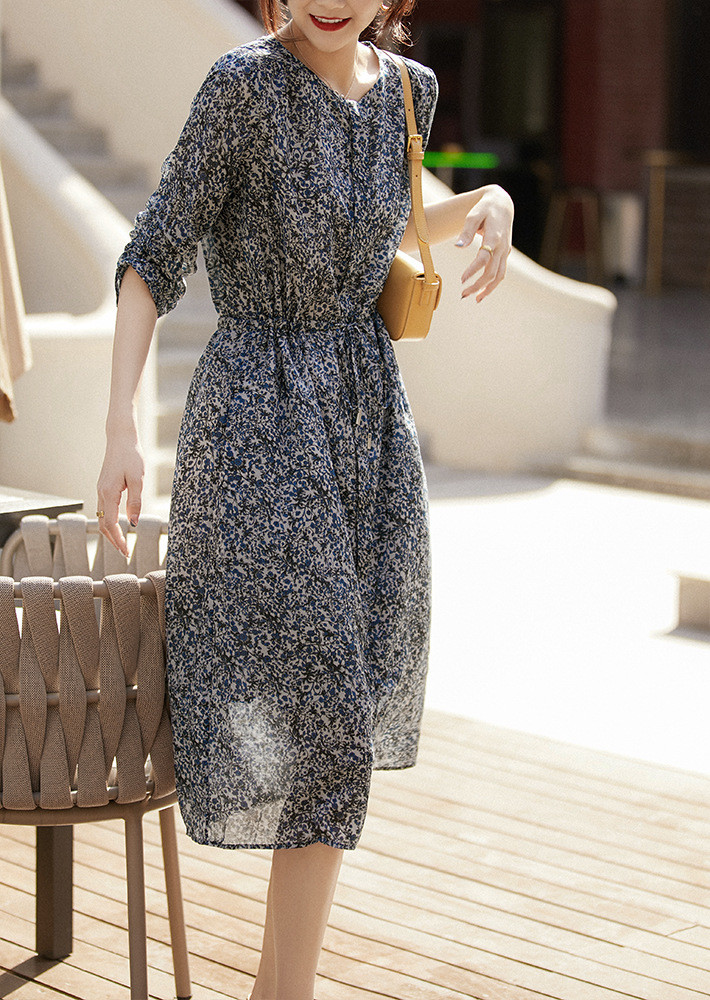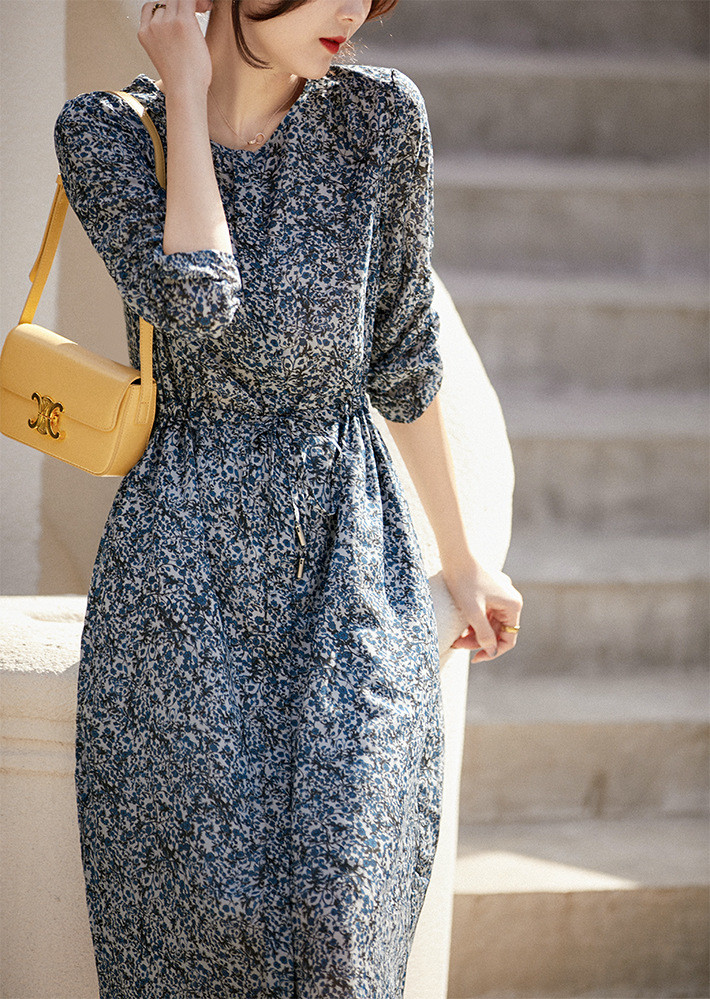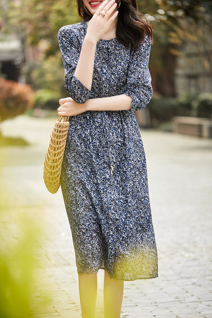 【服饰鞋包】日韩2022夏新摩纳哥星空法式浪漫印花系带显瘦中长连衣裙潮