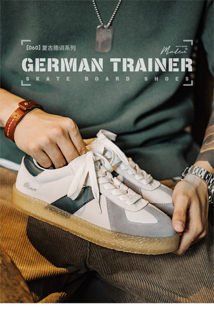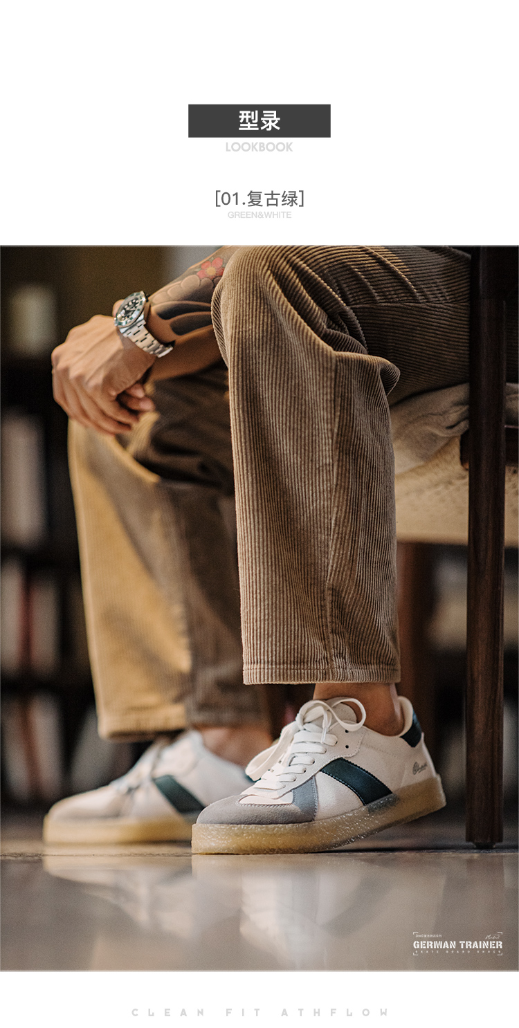 马登男鞋复古绿尾德训鞋2025春新款低帮板鞋休闲男鞋运动厚底板鞋