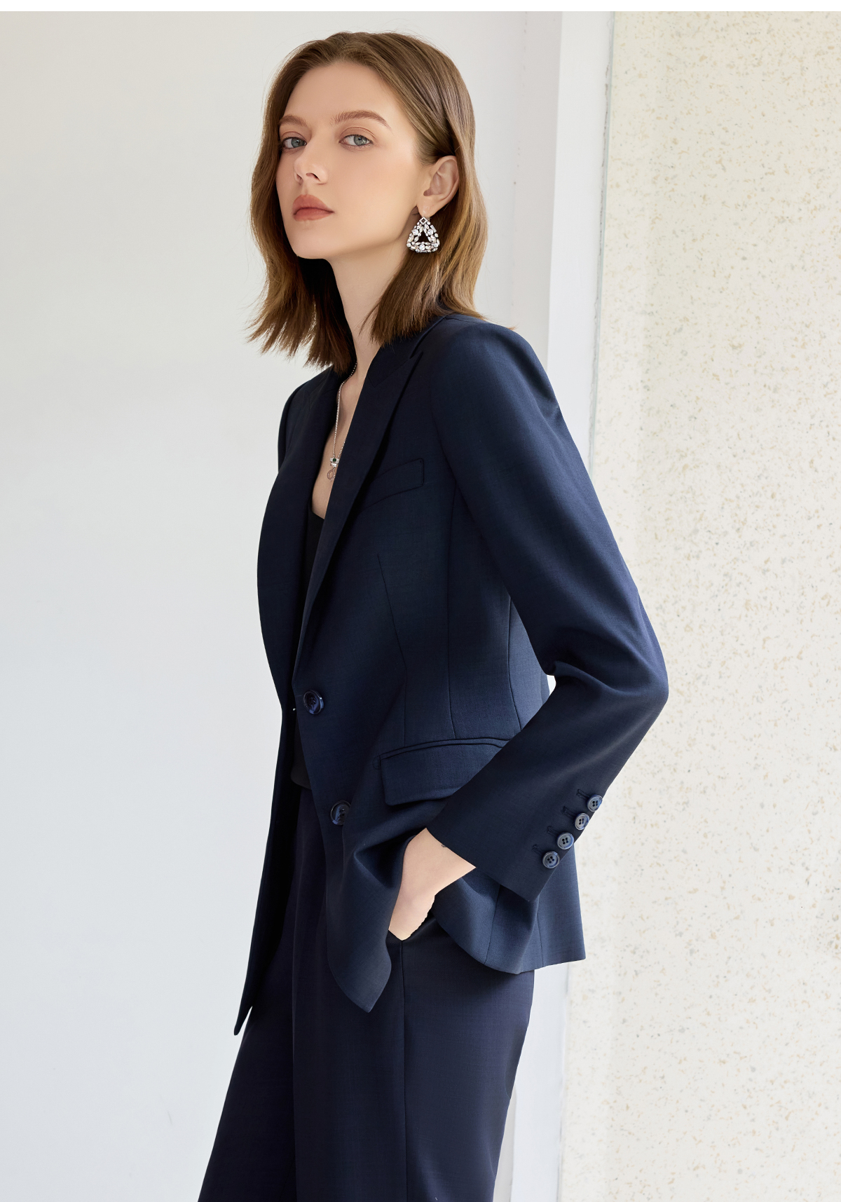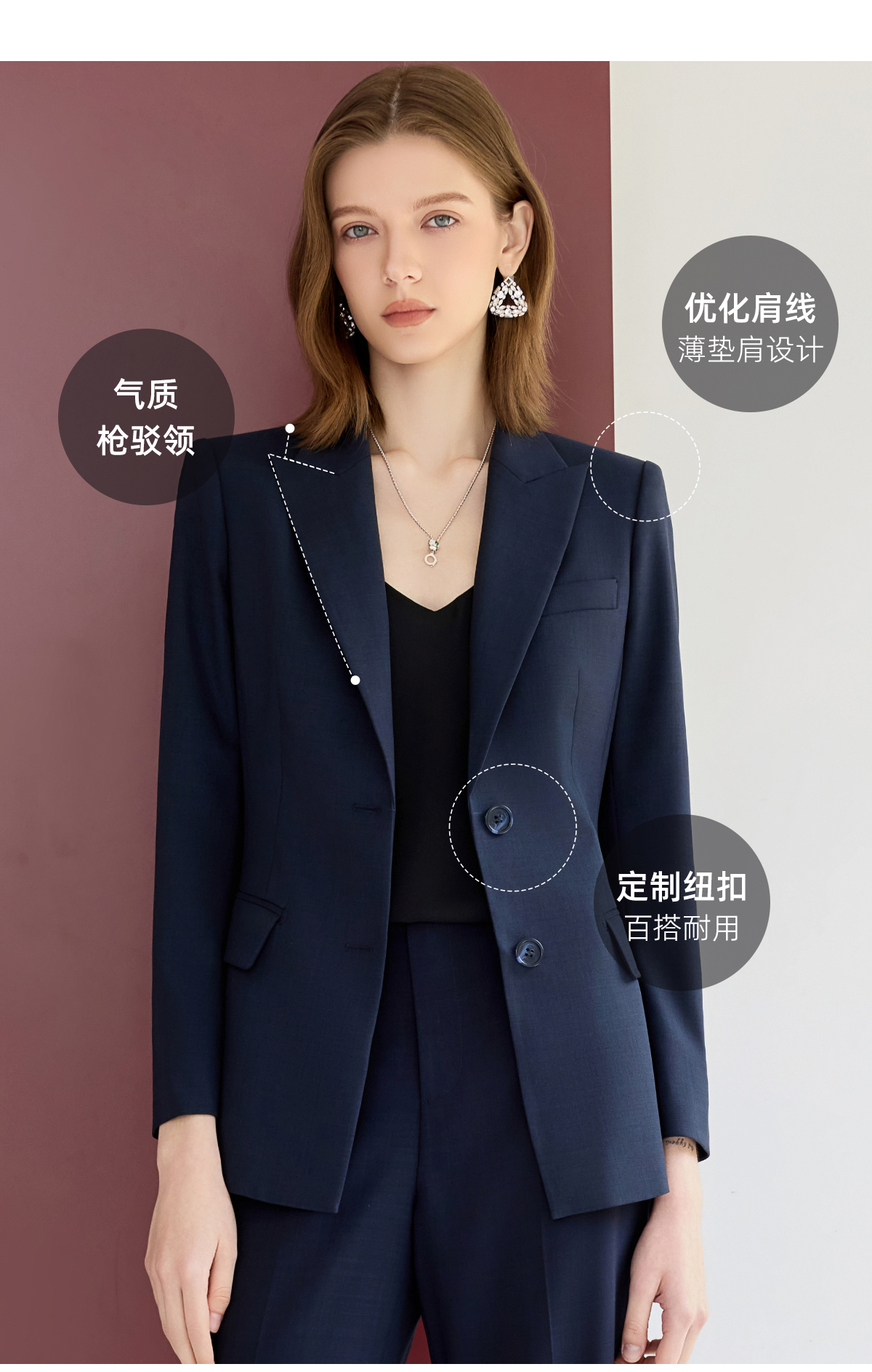艾尚臣藏青色西装套装女秋职业气质女神范高端小个子主持人工作服